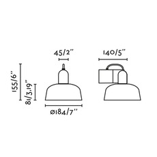 L'abat-jour du luminaire mesure 18,4cm de diamètre et l'applique entière mesure 15,5cm de hauteur et 14cm de profondeur. L'ampoule LED n'est pas incluse, il est recommandé d'utiliser une ampoule E27 d'une puissance de 15W maximum. Driver non requis et non dimmable.