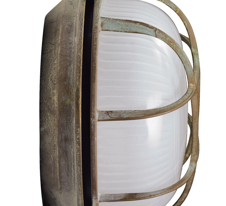 Le laiton chez Moretti Luce c’est 60% cuivre et 40% de zinc. Ce qui permet aux luminaires d’être installés dans des environnements très agressifs et dans les conditions atmosphériques les plus difficiles comme les zones côtières (sel marin) ou de montagne (températures extrêmement basse et neige).Les composants de ce luminaire sont en matière naturelle et "vivante". Ainsi, à l'épreuve du temps, le luminaire peut revêtir un aspect vieilli qui lui donne tout son charme.