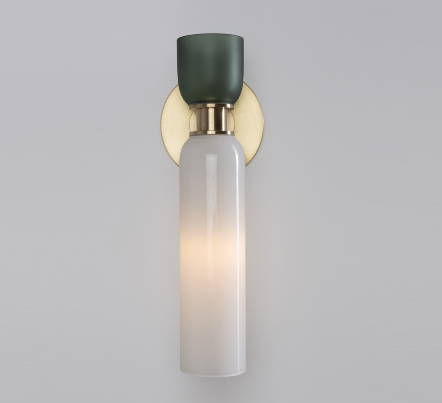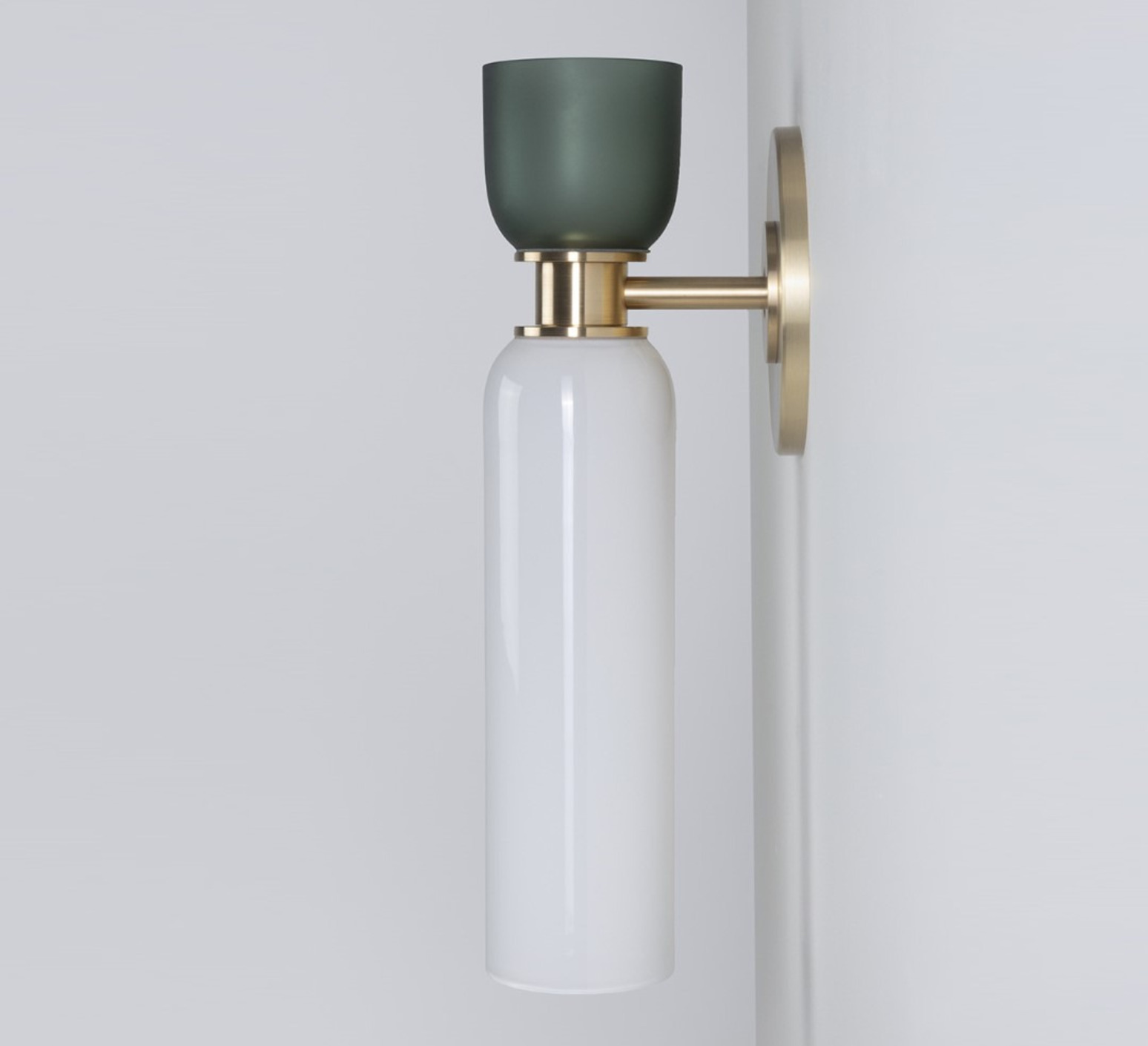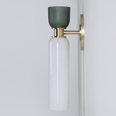 Son design cylindrique associe deux dômes de verre soufflé aux proportions contrastées : un dôme inférieur allongé en verre opaque blanc et un dôme supérieur plus compact en verre givré fumé. Séparés par un élément central en laiton aux détails classiques, ces volumes créent un jeu subtil de textures et de transparence. L'applique Union s'intègre avec élégance dans un salon, un couloir ou une chambre, seule ou en composition murale.