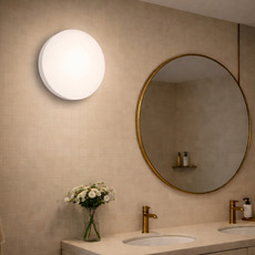 Applique ou plafonnier, Light.o.124, verre soufflé blanc, IP44, L36cm, H8cm - Zangra