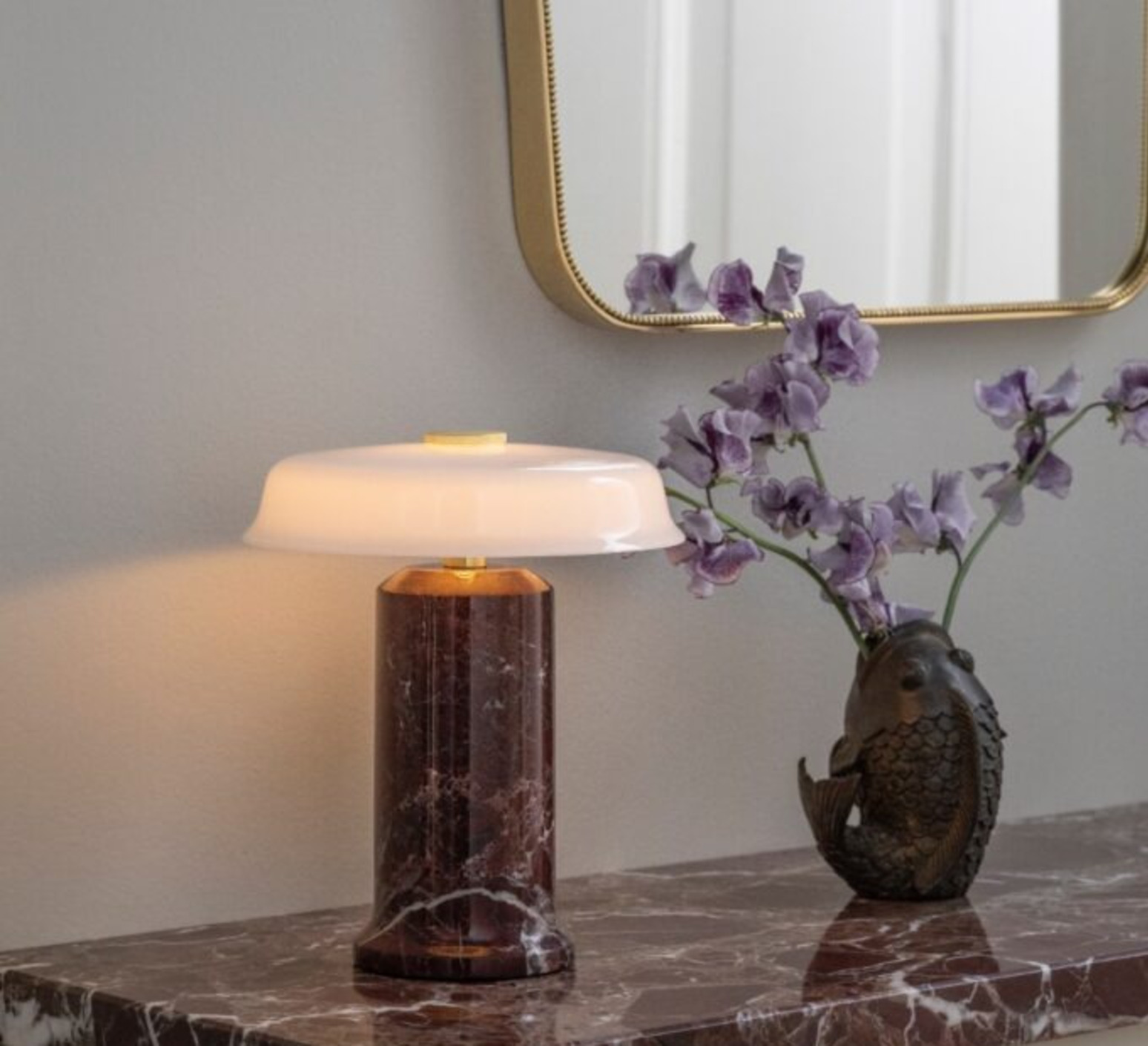 Baladeuse, Trip No.2 , opaline blanche, Marbre burgundy, IP44, LED, dim, 2700K, Ø18cm, H22cm - Design by us