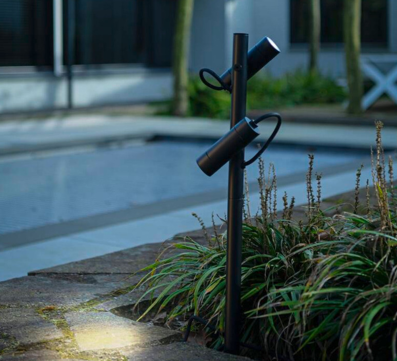 Avec sa silhouette longiligne et sa finition en aluminium noir, cette borne s’intègre avec élégance dans un jardin contemporain. Elle se place idéalement en alignement le long d’une allée ou près d’un massif, pour structurer l’espace tout en apportant un éclairage fonctionnel.