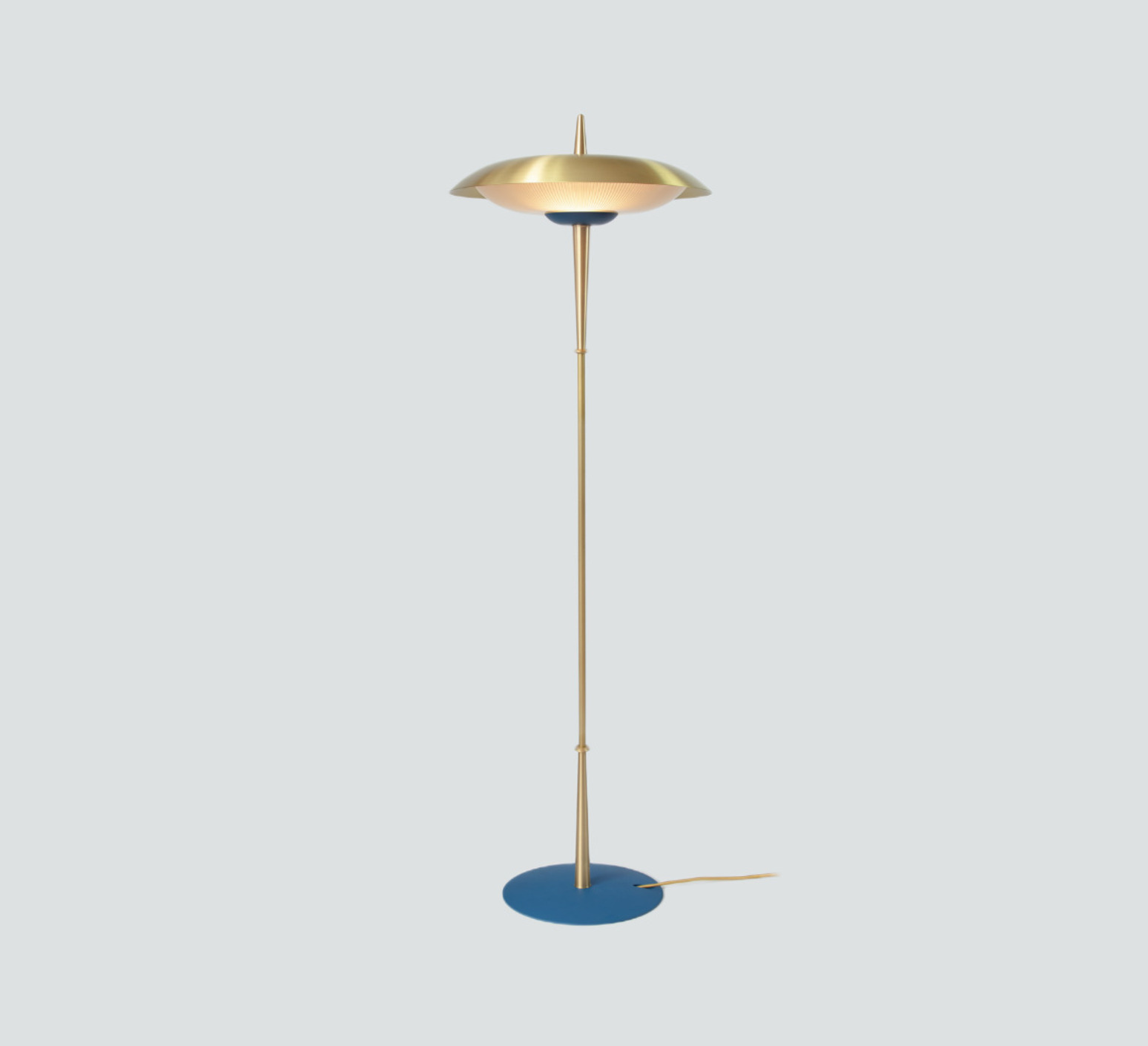 Lampadaire, Durant, laiton brossé et bleu, LED, 2700K, Ø43cm, H139,5cm - Bert frank
