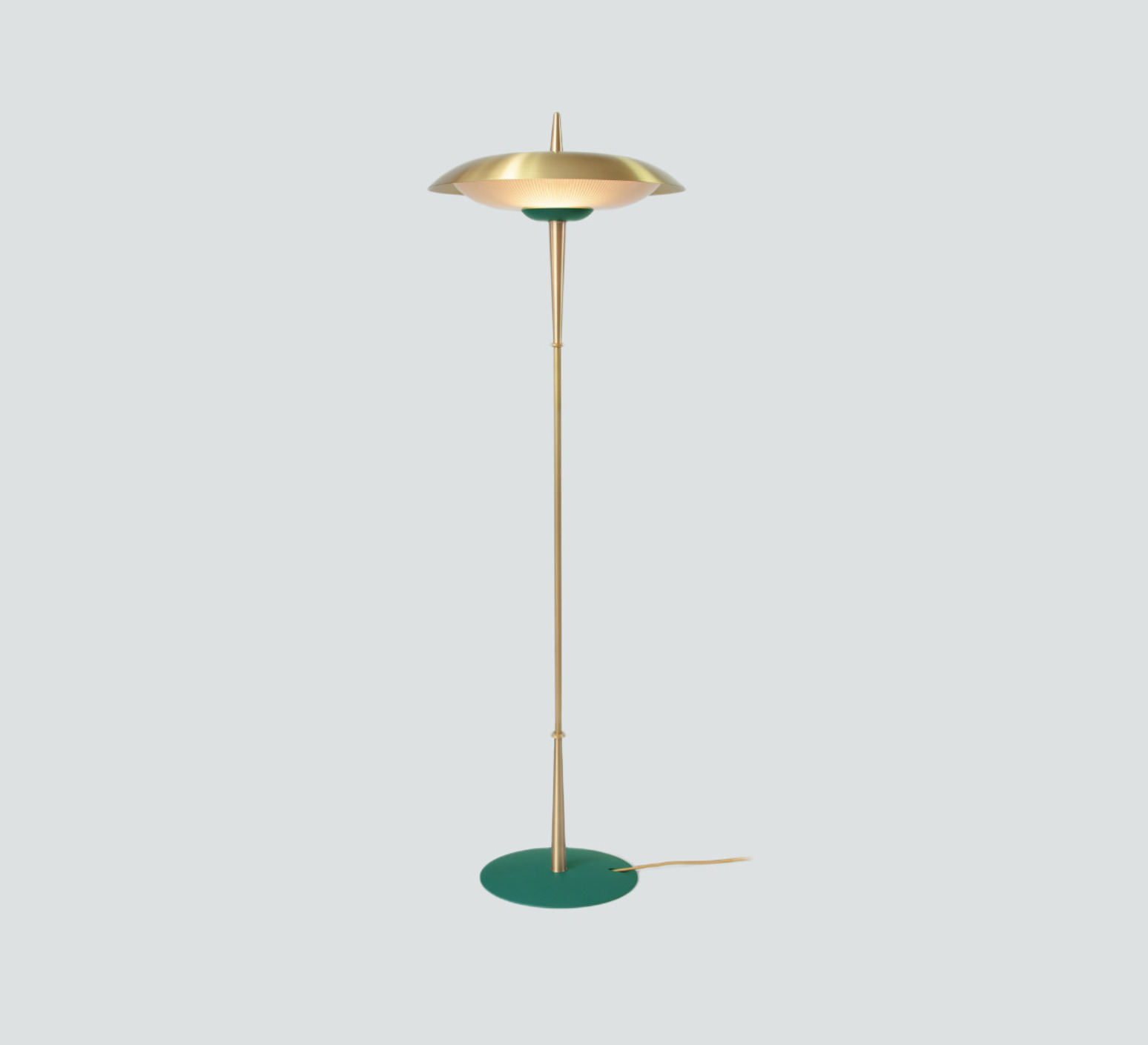 Lampadaire, Durant, laiton brossé et vert, LED, 2700K, Ø43cm, H139.5cm - Bert frank