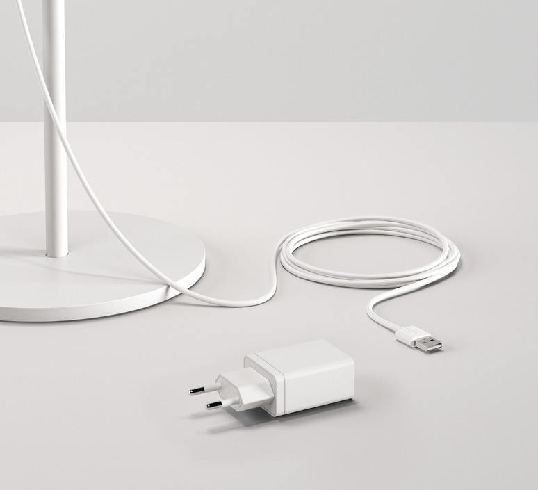 Réalisée en métal et papier, le lampadaire Hover intègre une source LED (2700 K, 1000 lm, IRC > 90) offrant un éclairage chaud et naturel. Il dispose d’un variateur tactile pour ajuster l’intensité lumineuse selon les besoins, d’un driver intégré et d’un adaptateur USB inclus.