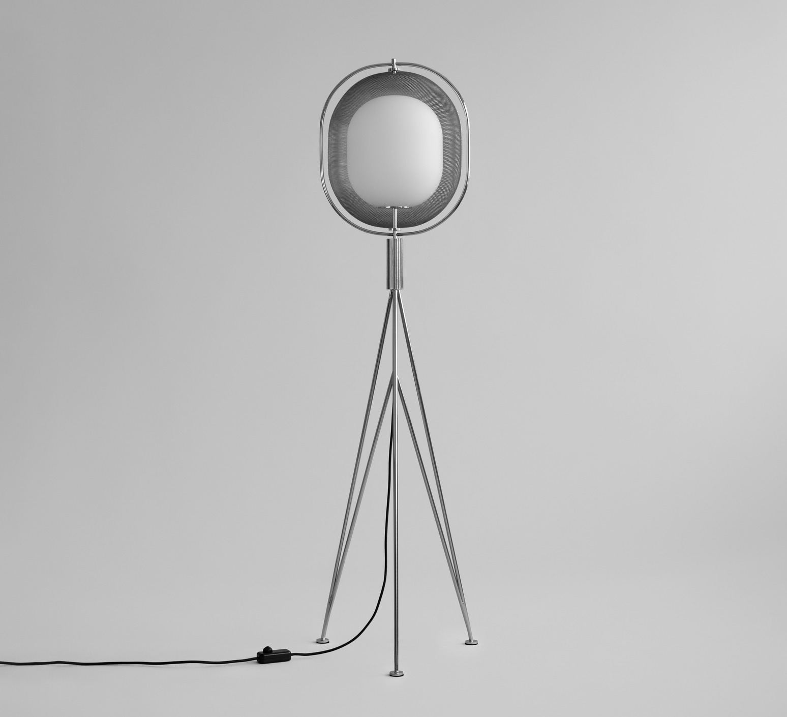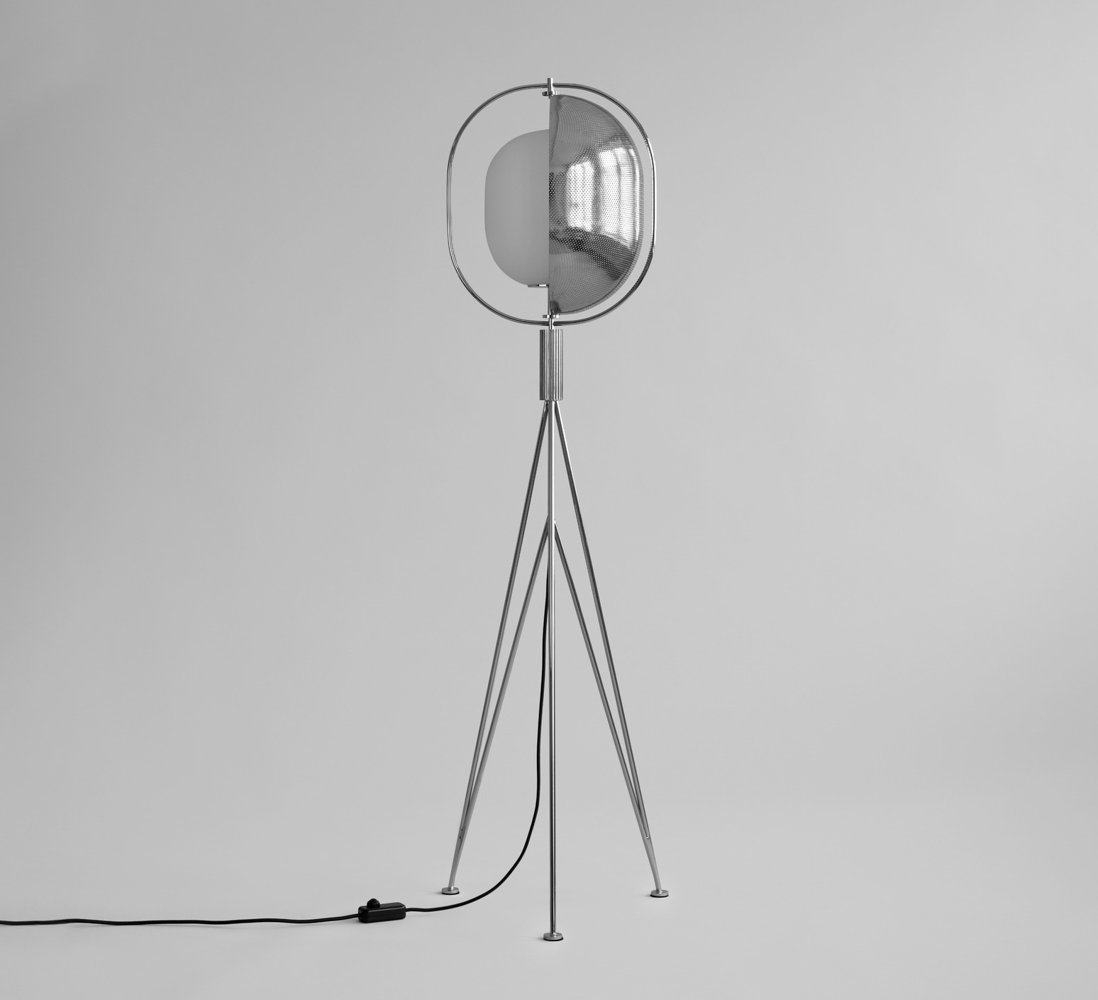 Le lampadaire Pearl de 101 Copenhagen, issu de la collection Pearl conçue par Kristian Sofus Hansen et Tommy Hyldahl, propose une approche décorative intérieure alliant graphisme et lumière diffuse.