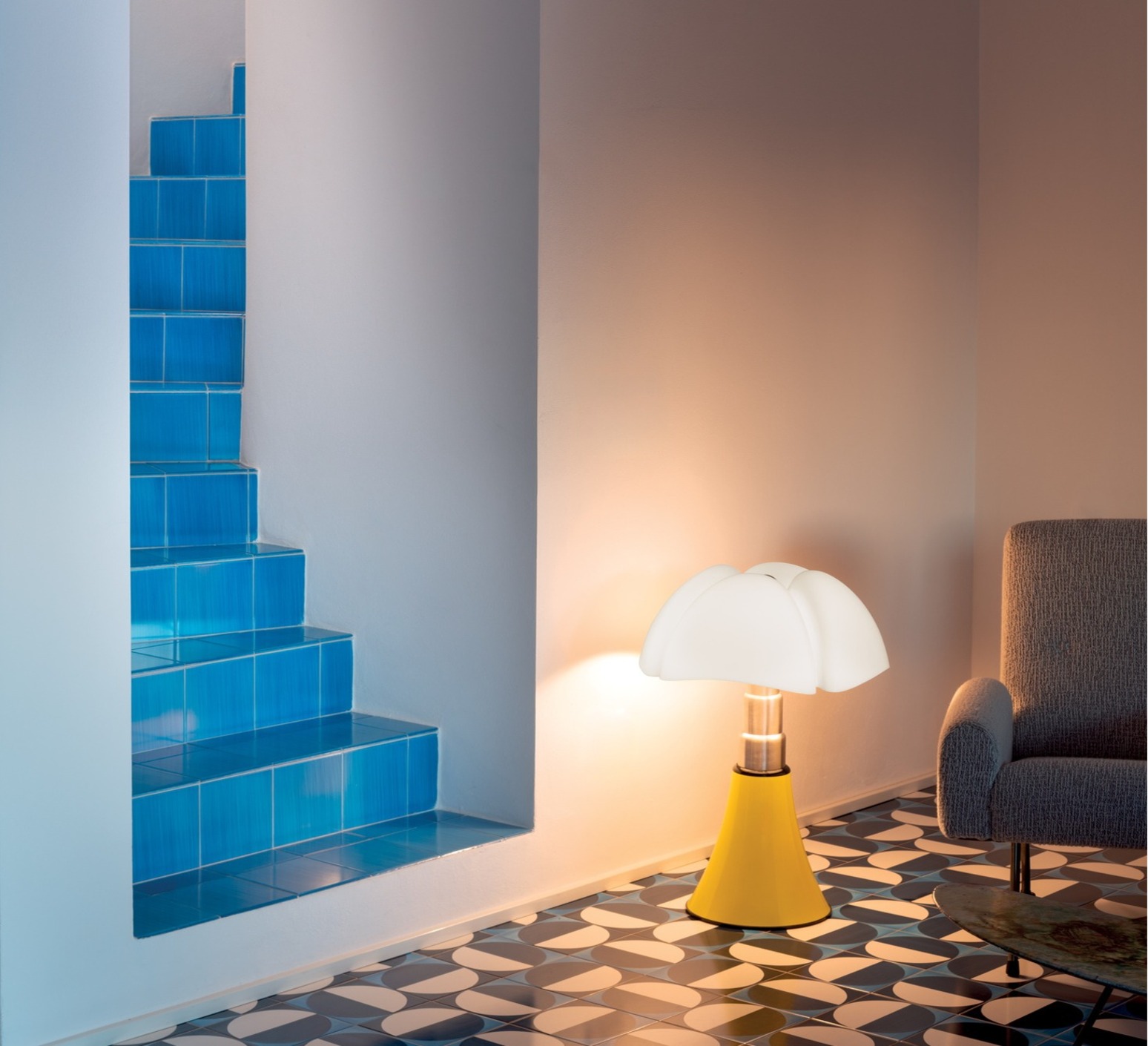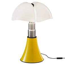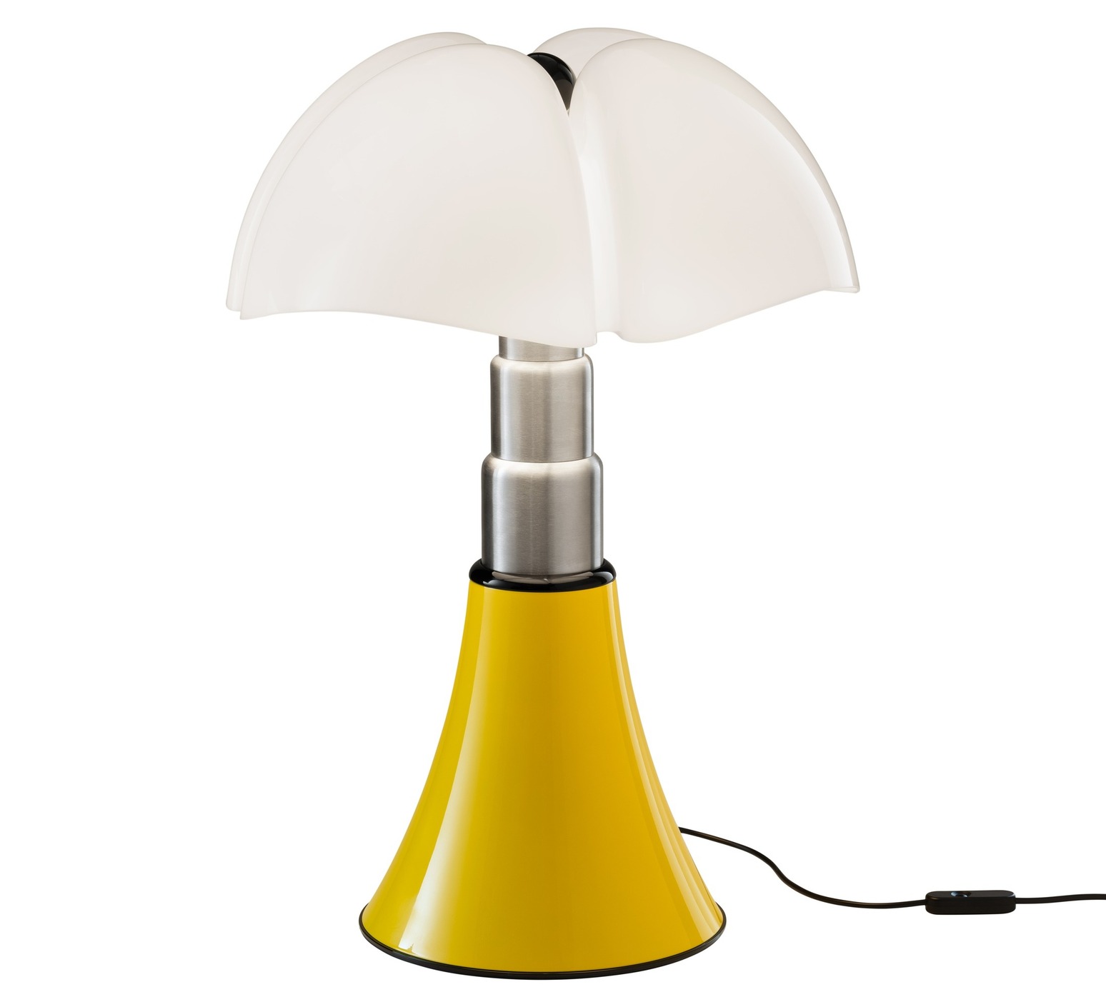 Cette lampe à poser design dans sa version Pop en jaune et noir, est une icône du design. La base jaune sertie de noir rappelle la période Pop Art. Exubérante et audacieuse, elle offre un design solaire à votre intérieur. Elle éclaire votre intérieur avec élégance. La forme de la base évasée a été inspirée des ailes d’une chauve-souris ("pipistrello" en italien).