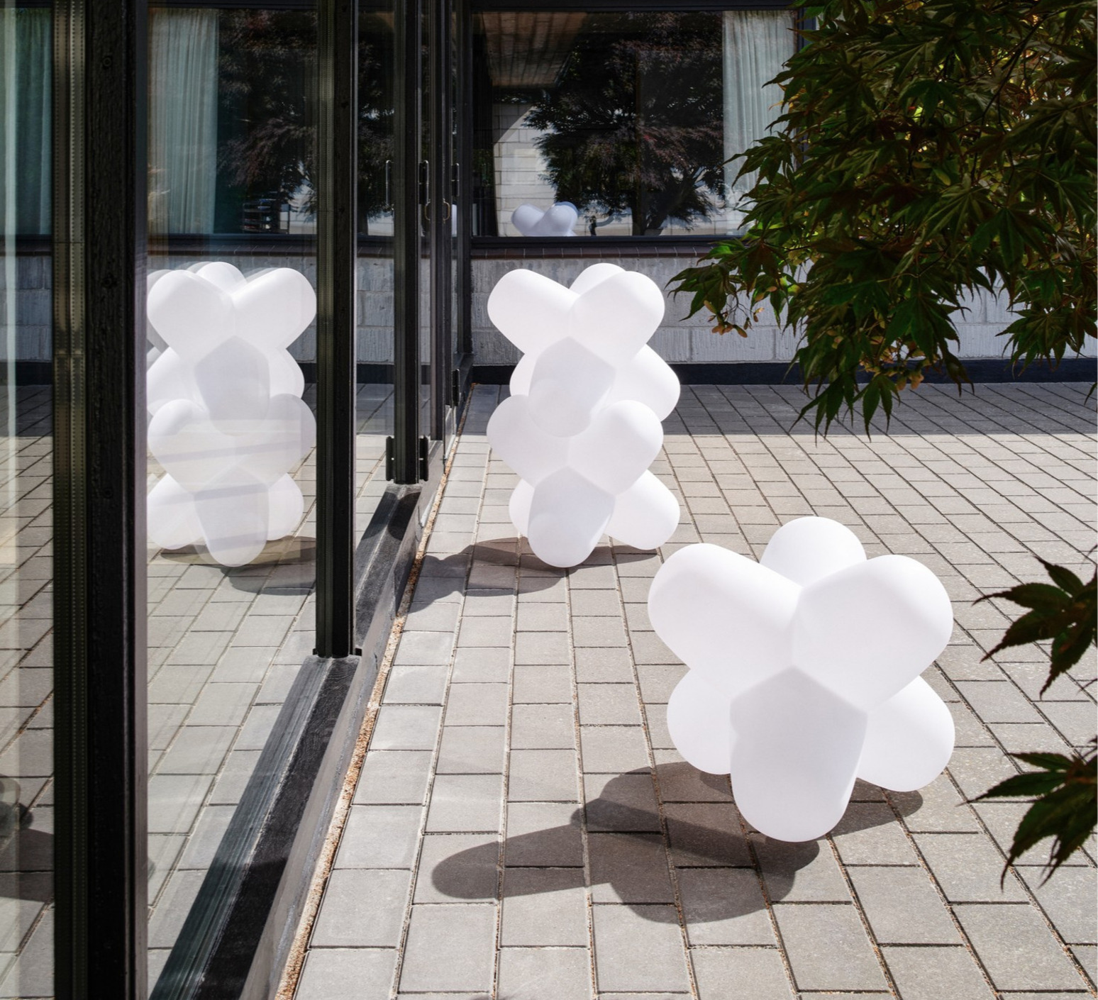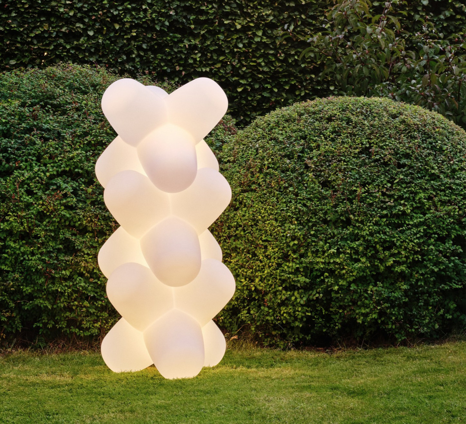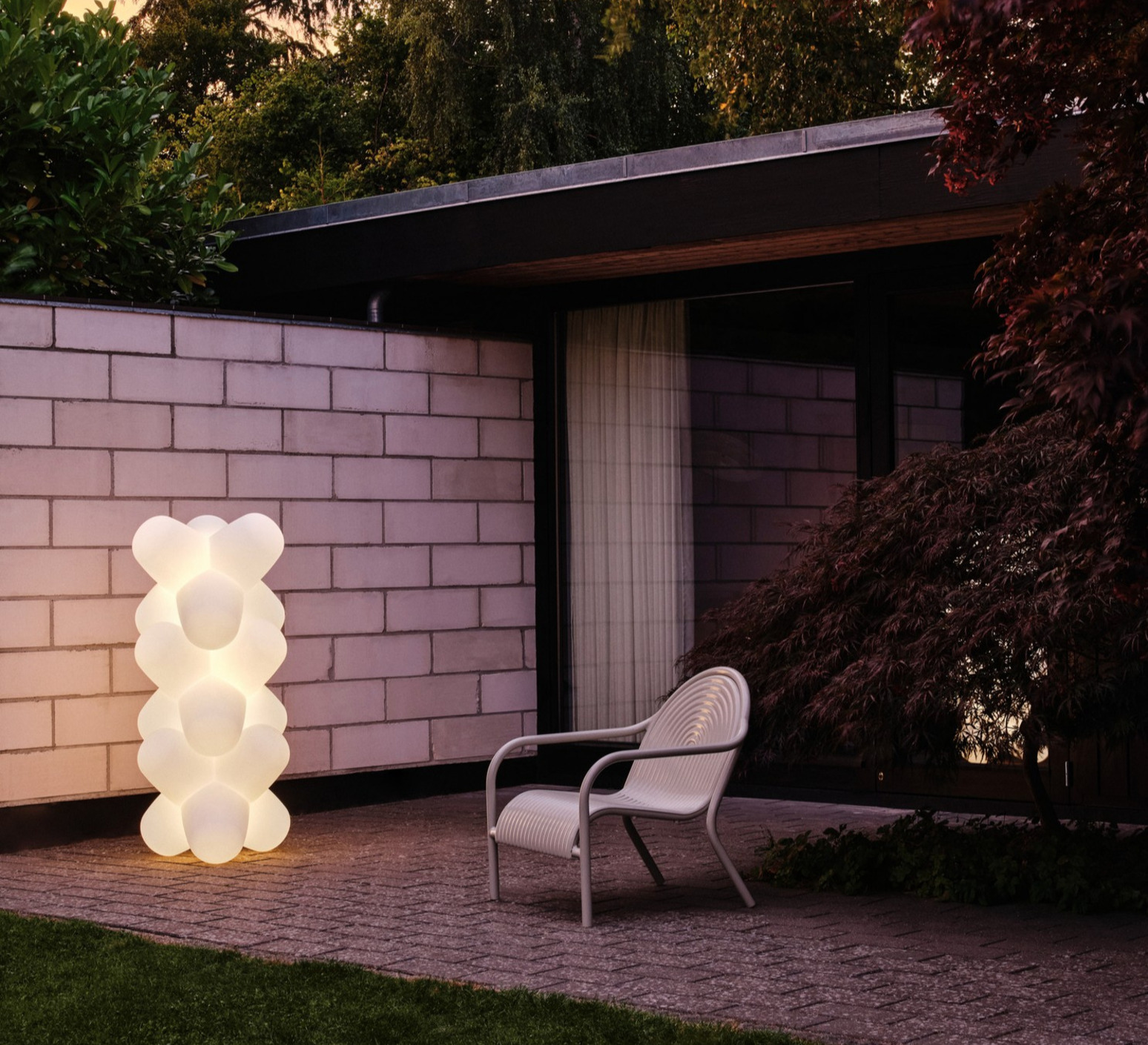 Sa silhouette organique blanche, inspirée des tétrapodes en béton des défenses côtières, affiche une esthétique graphique immédiatement identifiable. Pensée pour les grands espaces, Jack s’utilise aussi bien en intérieur qu’en extérieur, seule ou empilée pour créer un paysage lumineux modulable. Sa diffusion lumineuse à 360° structure l’espace avec équilibre et accompagne les usages décoratifs, du jardin au salon.