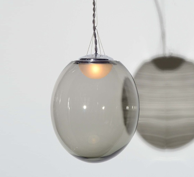 Un petit bijou de la collection 2007/2008 ! Fabriquée en combinant des couches de cristal teintées grises transparentes de façon artisanale, cette technique apporte mystère et profondeur au corps. Le globe produit une lumière aux reflets uniques. Par ailleurs, elle est munie d’un diffuseur en verre dépoli, placé sous le sommet du globe de cristal.