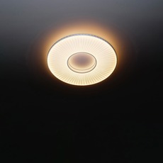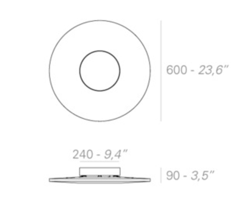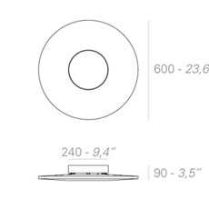 Le plafonnier Iris présente un diamètre de 60 cm pour une hauteur de 9 cm. La source lumineuse 2700K, 5250 lm est fournie.
