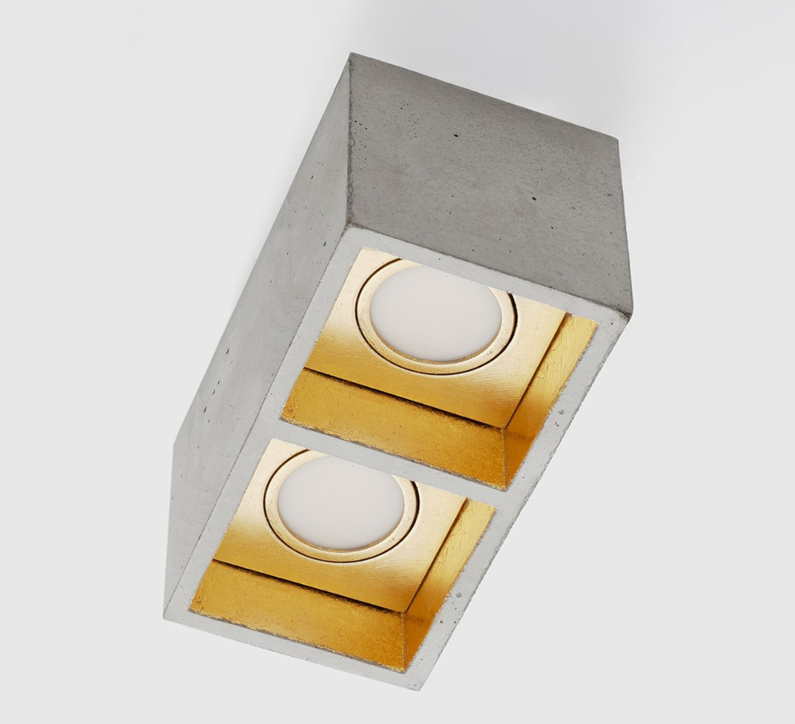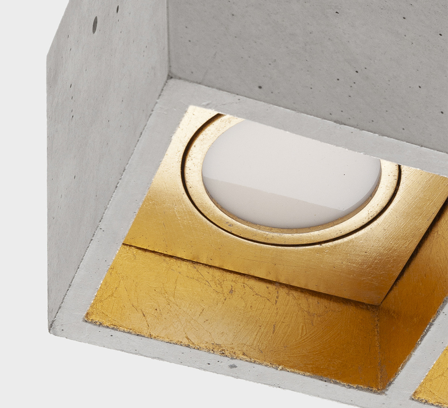 Son esthétique cubique associe un béton gris mat à des touches dorées, créant un contraste élégant et contemporain. Le spot [B7]² apporte une présence graphique forte tout en restant sobre, ce qui le rend idéal pour sublimer un intérieur au style naturel ou moderne. Il s'intègre parfaitement dans un salon, un couloir ou un espace de travail, seul ou en composition, pour créer des accents lumineux décoratifs.