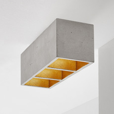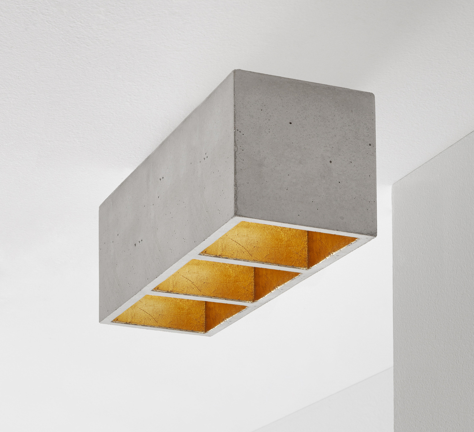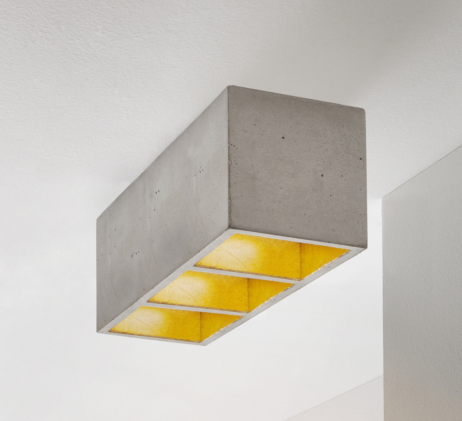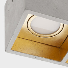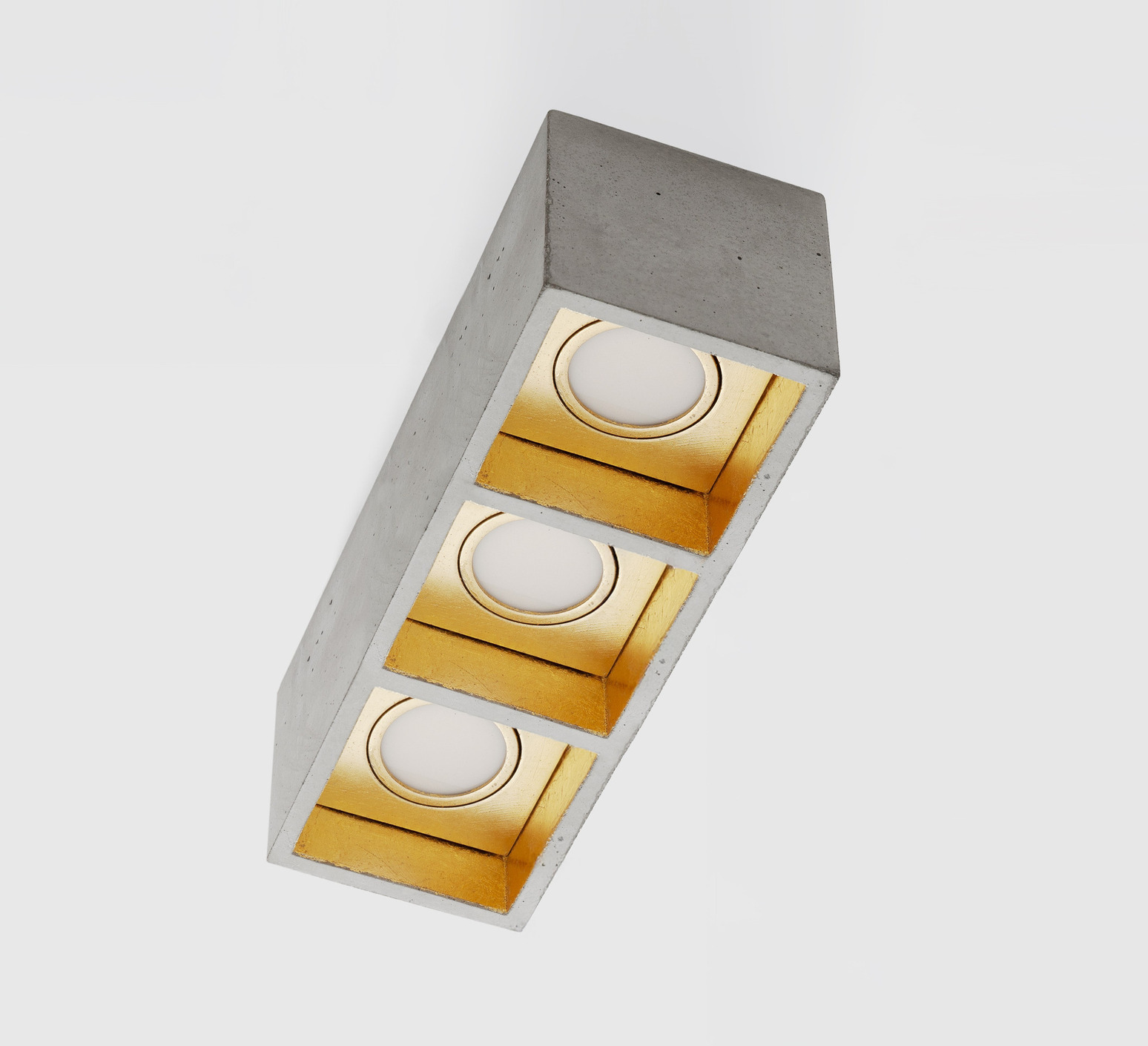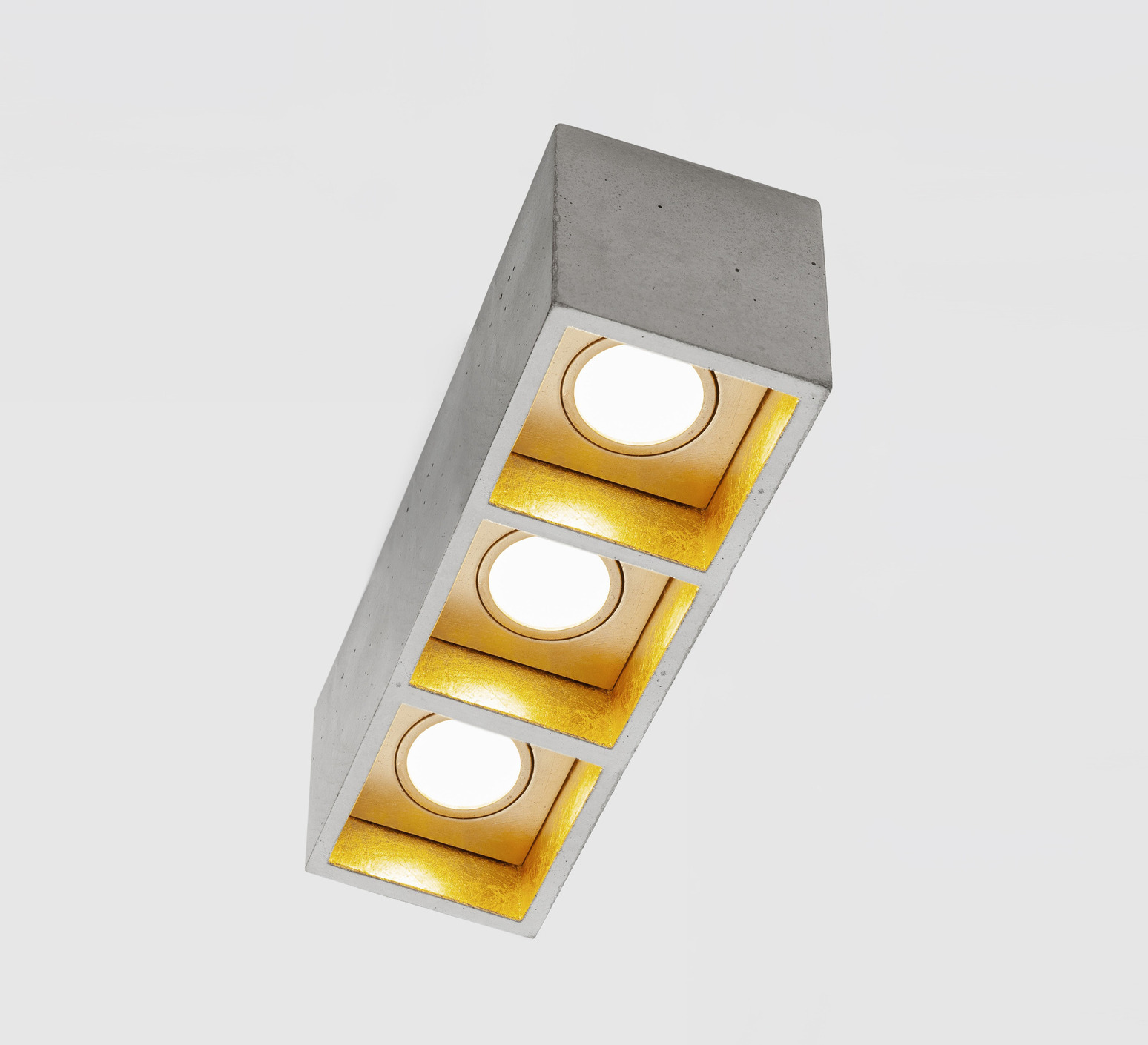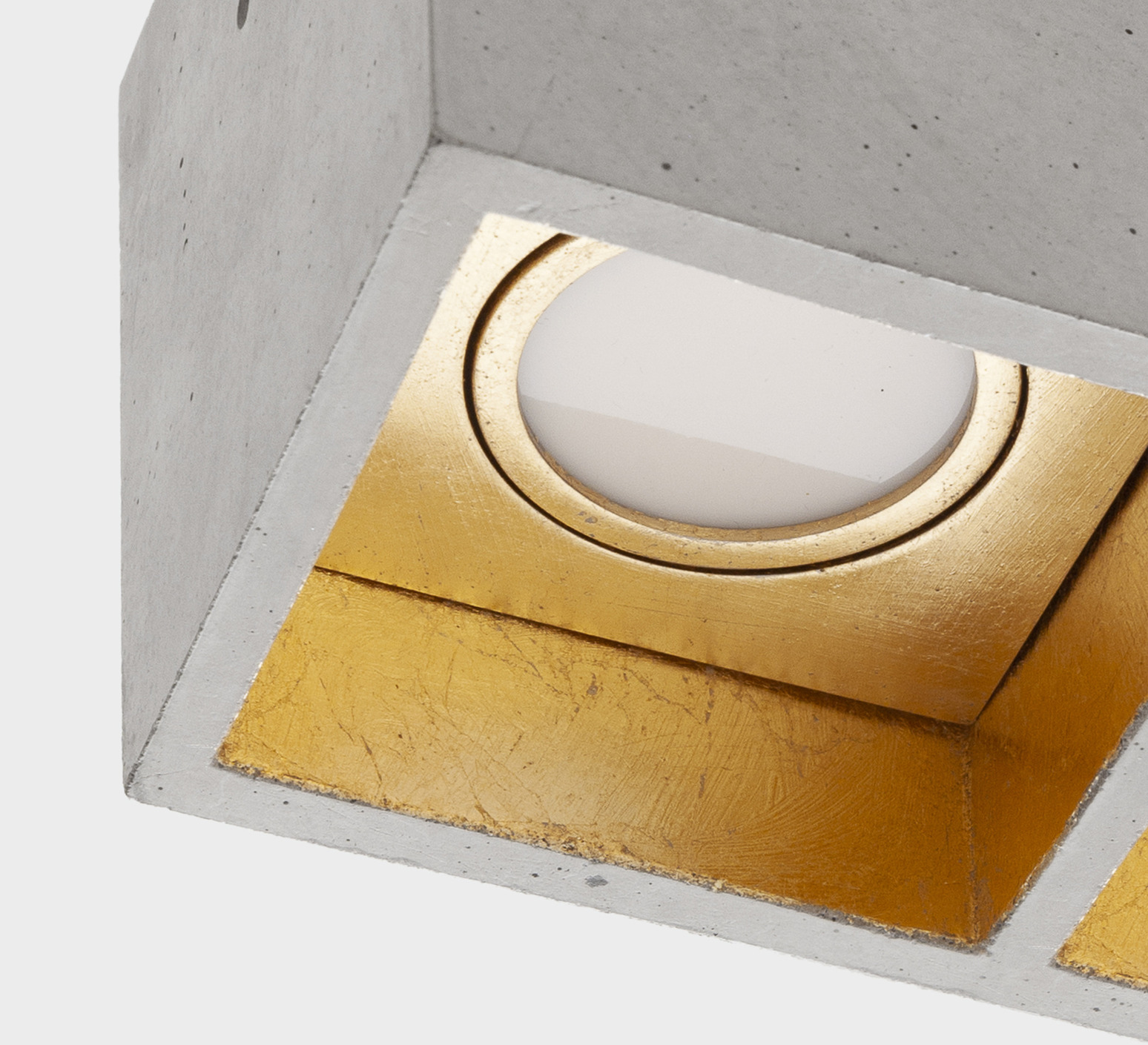 Son design cubique en béton gris est subtilement rehaussé d’un intérieur doré, créant un contraste élégant et chaleureux. L’aspect brut du béton associé aux reflets or confère au spot [B7]³ une présence contemporaine et naturelle. Il s’intègre harmonieusement dans un salon, un couloir ou une cuisine, en installation seule pour un accent décoratif ou en série pour structurer visuellement l’espace.