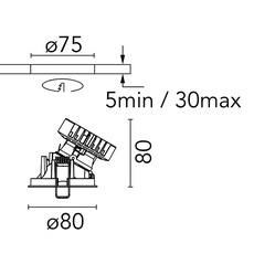 Ce spot a un diamètre d’encastrement de 8 cm et nécessite une profondeur d’encastrement de 9,1 cm. Sa source lumineuse de 3000K est incluse. Le driver n'est pas fourni avec le spot mais nécessaire à son bon fonctionnement.