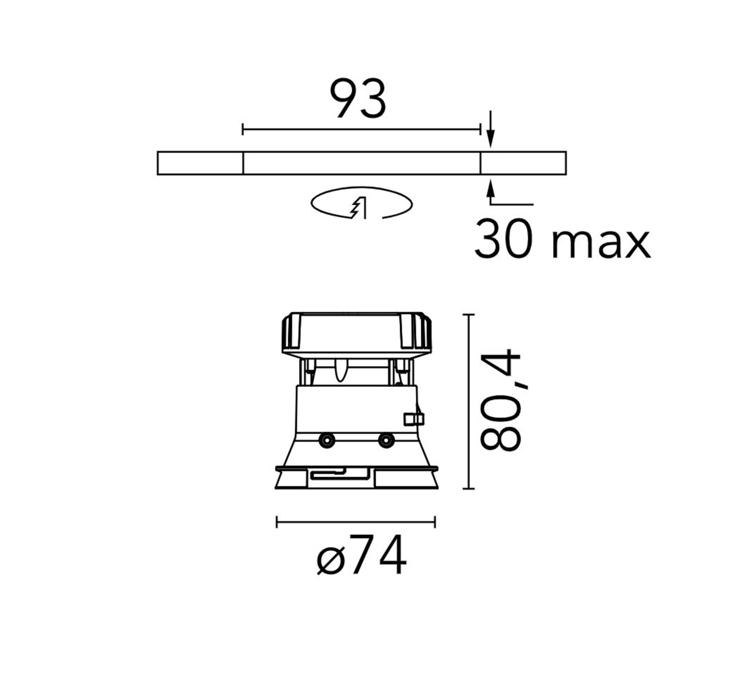 Ce spot a un diamètre d’encastrement de 7,4 cm et nécessite une profondeur d’encastrement de 9,1 cm. Sa source lumineuse de 2700K est incluse. Le driver n'est pas fourni avec le spot mais nécessaire à son bon fonctionnement.