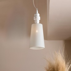 Suspension, Ali e Baba, céramique blanche et lin blanc, Ø35cm, H95cm - Karman