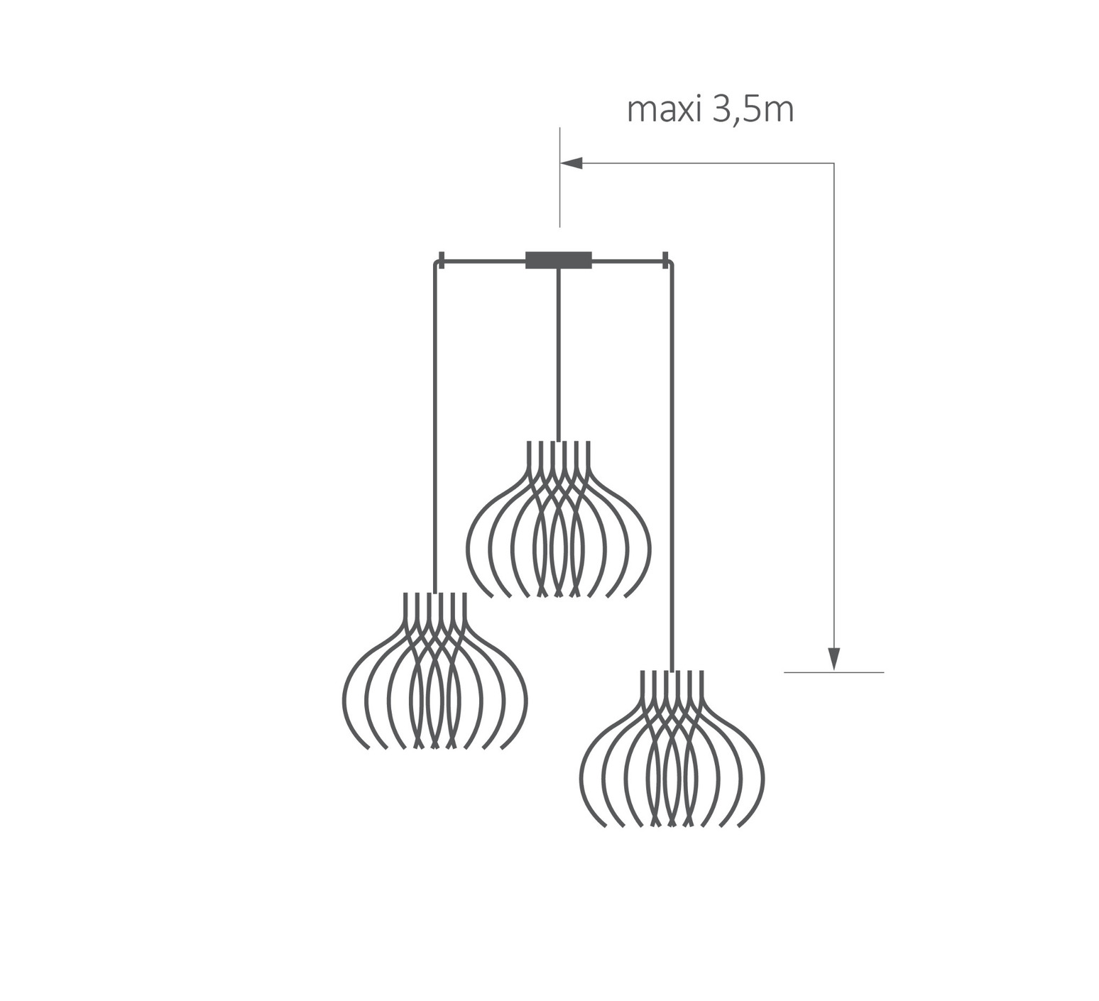 Suspension, Assy x3 Rinöz S, noir, Ø35cm, H30cm - Piatoni