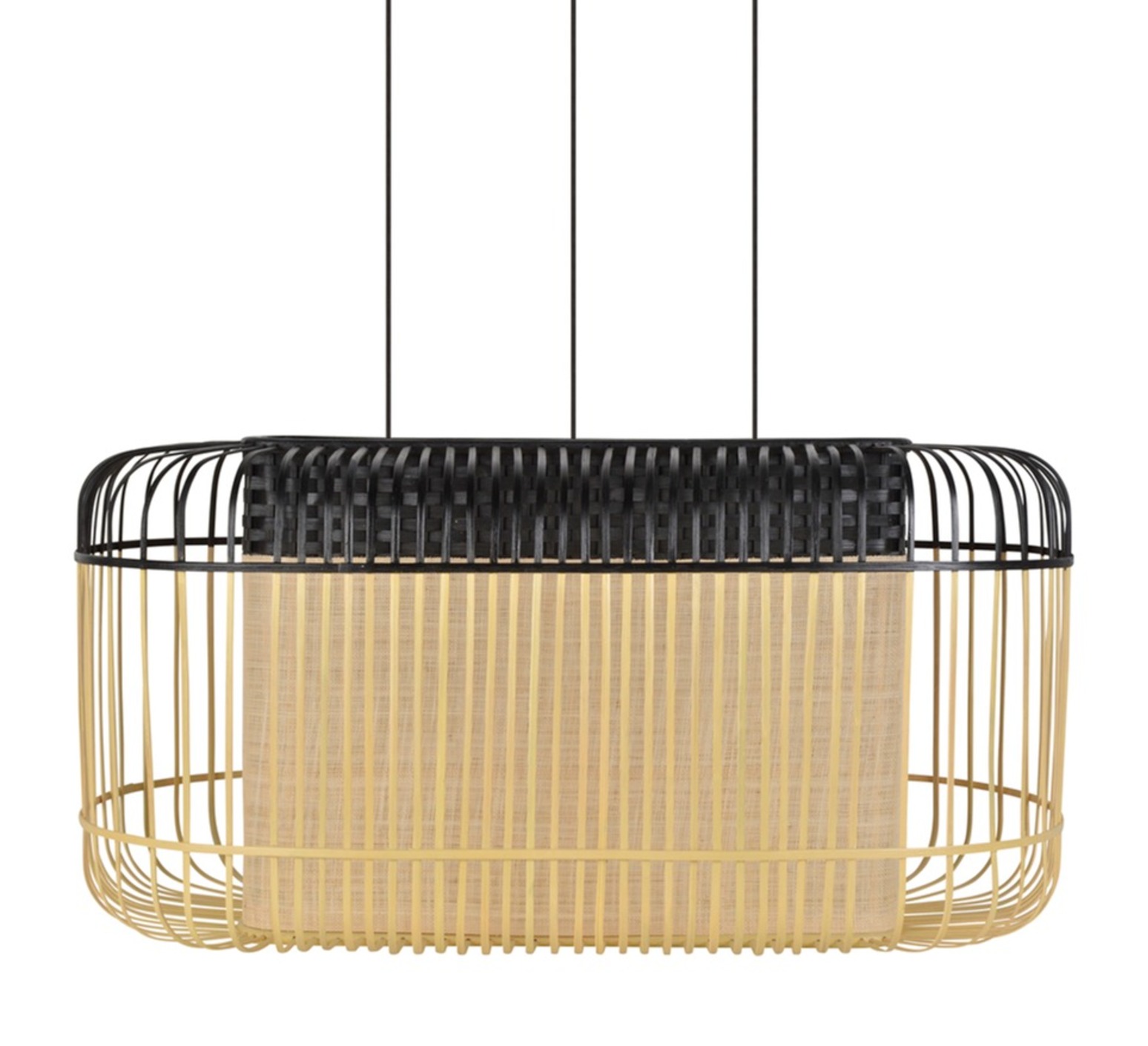 Voici la suspension Bamboo Oval XL de coloris noir, dessinée par Arik Levy et éditée par la maison d’édition française Forestier.