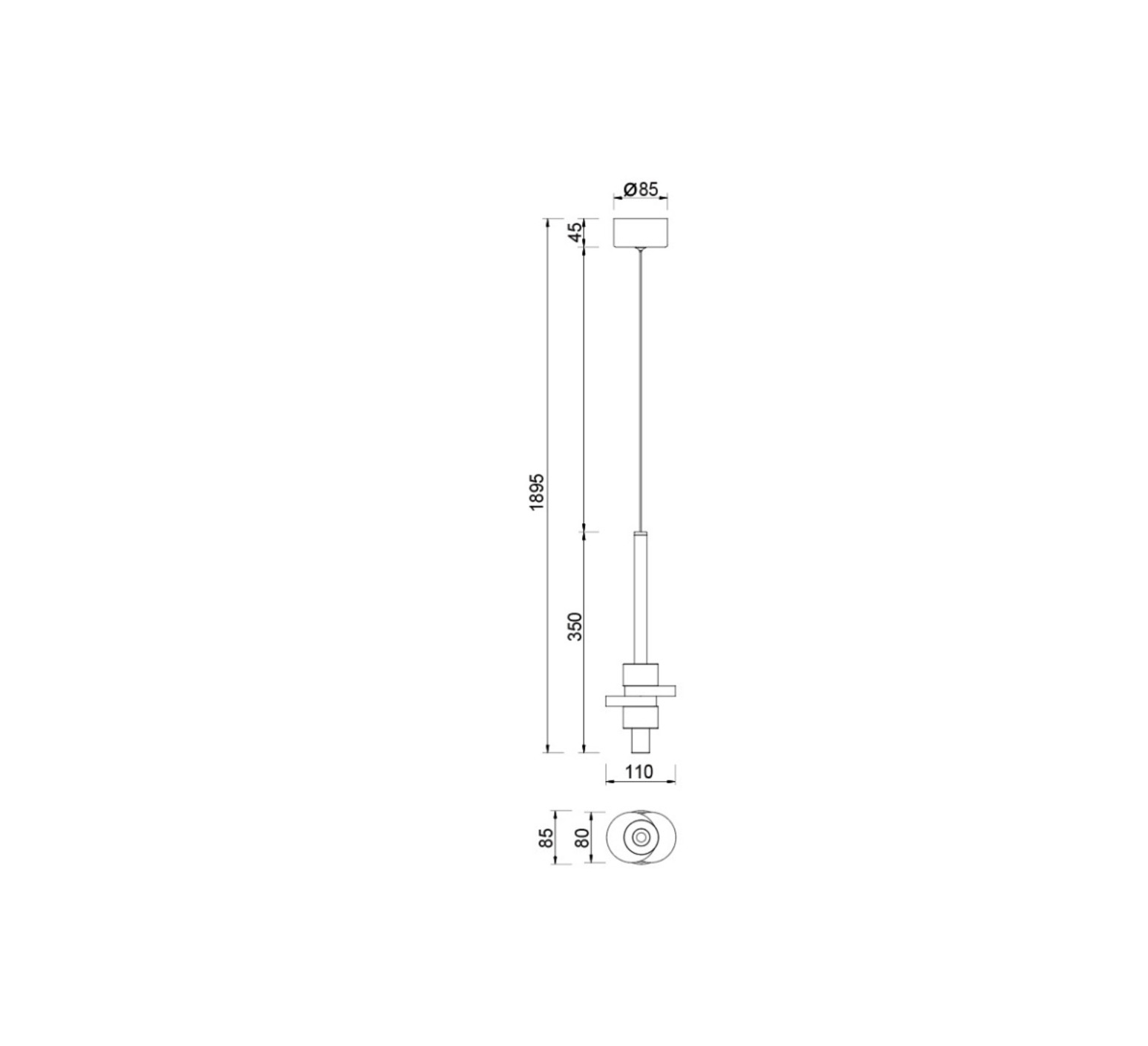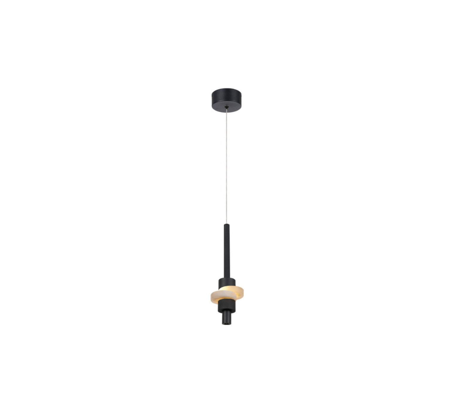 L'aluminium noir revêt une esthétique Art Déco intemporelle. Ses proportions compactes (diamètre 11 cm, hauteur 35 cm) conviennent aux espaces restreints et aux configurations d'enfilades. Son câble transparent de 1,5 m s'efface visuellement pour laisser la forme primer. Suspendre cette pièce au-dessus d'une table de nuit, d'une console ou d'un coin lecture crée un point lumineux discret et raffiné.