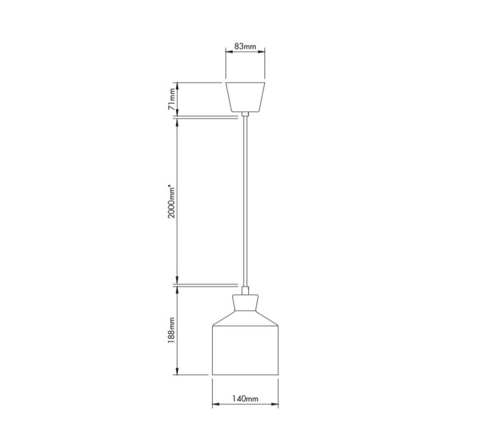 La suspension mesure 14cm de diamètre et 18,8cm de hauteur.