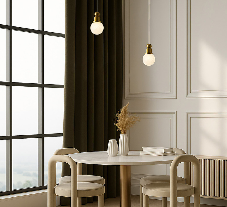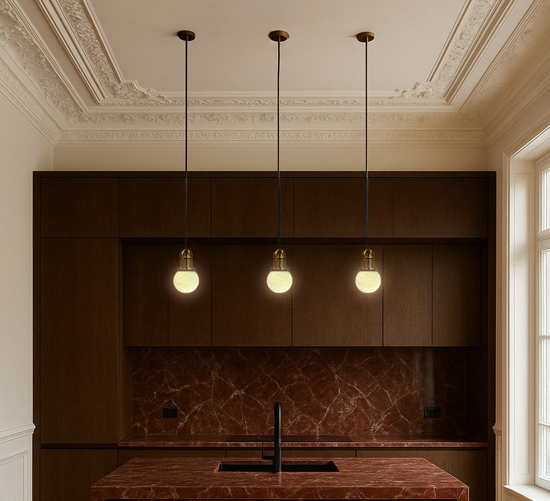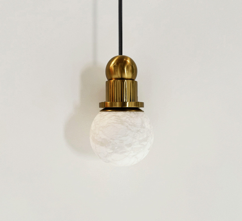 La suspension Biblo se distingue par son globe en jade blanc qui diffuse une lumière douce et apaisante. Sa base en métal doré apporte une note de sophistication. Avec son diamètre de 10 cm et sa hauteur de 17 cm, elle s'intègre parfaitement au-dessus d'une table ou dans un hall d'entrée.