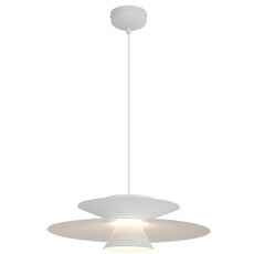 Son design circulaire blanc en aluminium joue sur des volumes imbriqués qui captent et diffusent la lumière avec subtilité. Le diamètre de 50 cm et la hauteur compacte de 15,4 cm conviennent aux plafonds standards comme aux espaces généreux. Suspendue au-dessus d'une table de repas, d'un îlot de cuisine ou d'un salon, elle crée un point focal épuré. Son câble blanc de 2 mètres s'intègre discrètement au décor.