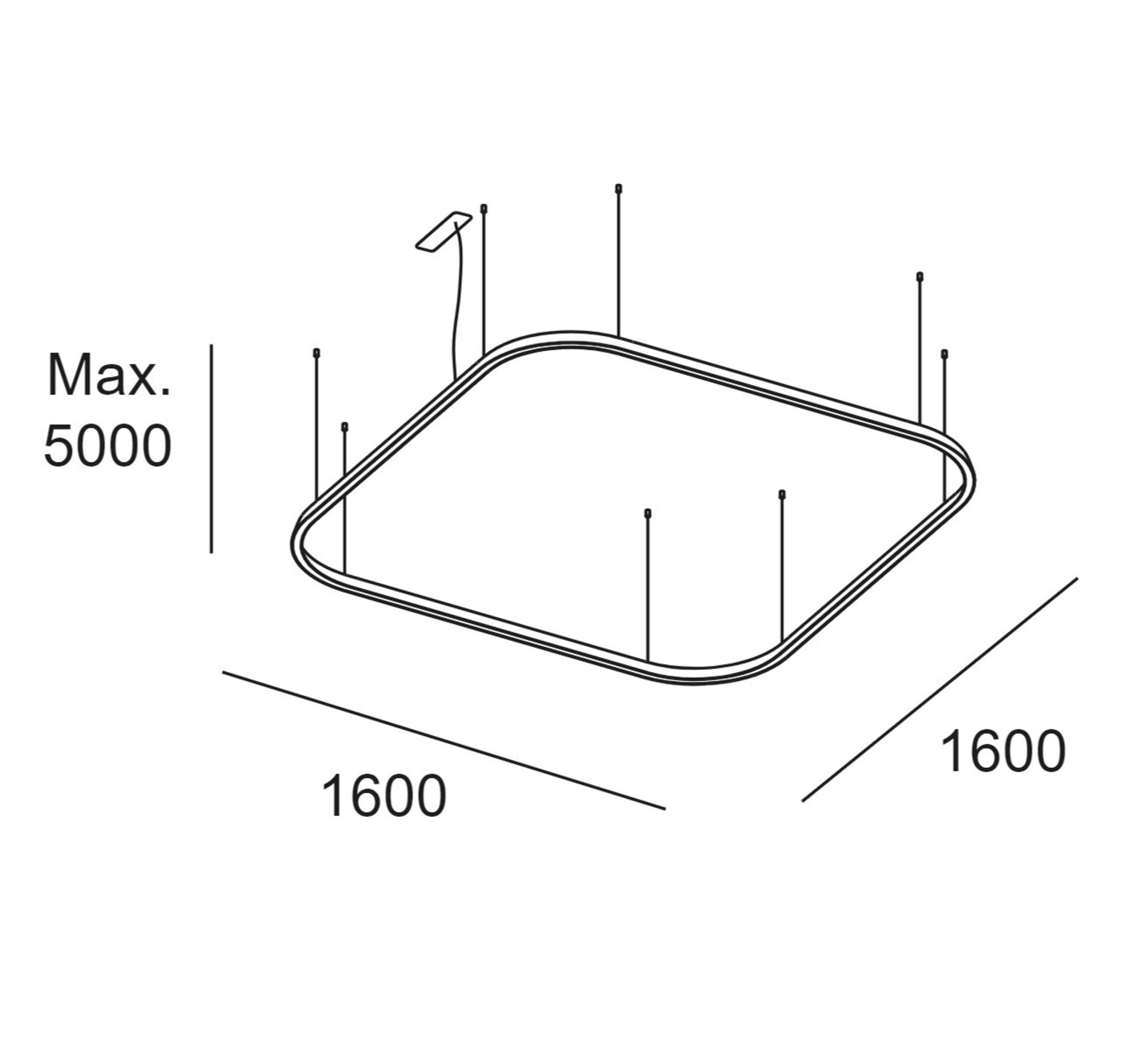 Geometric Square Mini en finition noir mesure 60 cm de hauteur et 160cm de diamètre. Ses câbles peuvent mesurer jusqu’à 5 mètres.