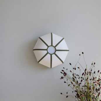 Inspirée du célèbre lustre Murano de Gio Ponti, elle réinterprète les formes classiques en leur insufflant une touche contemporaine. Fabriquée en acier, acrylique et aluminium, elle se compose de trois coloris vibrants : vert signal, bleu profond et blanc écru.
