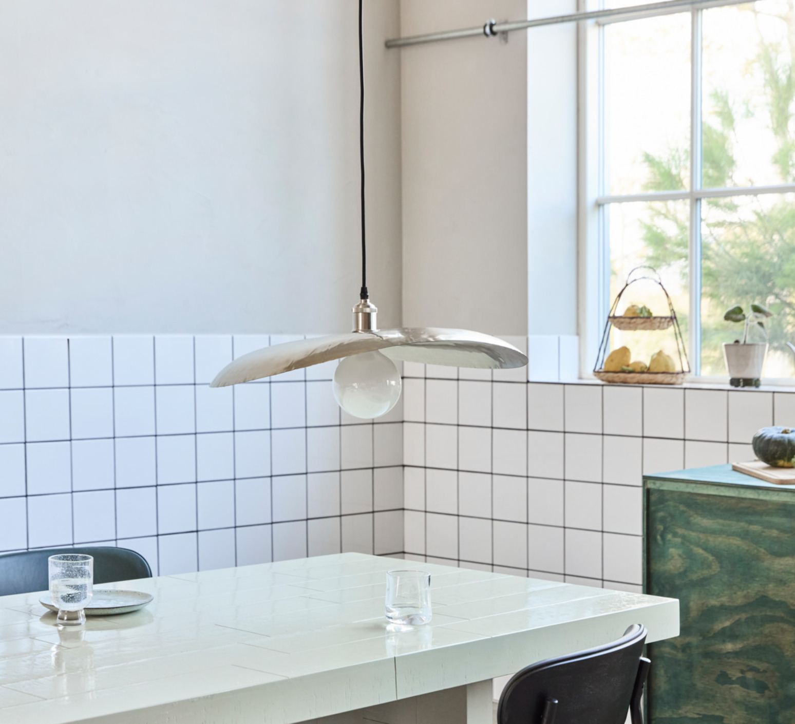 Avec ses lignes douces et sa teinte argentée chaleureuse, cet abat-jour s'intègre aisément dans divers styles d'intérieur, du contemporain au minimaliste. Suspendue au-dessus d’une table à manger, d’un îlot de cuisine ou au centre d’un salon, elle diffuse un éclairage direct qui rehausse l’ambiance tout en devenant un point focal décoratif. Associez-la à une ampoule décorative pour souligner son caractère.