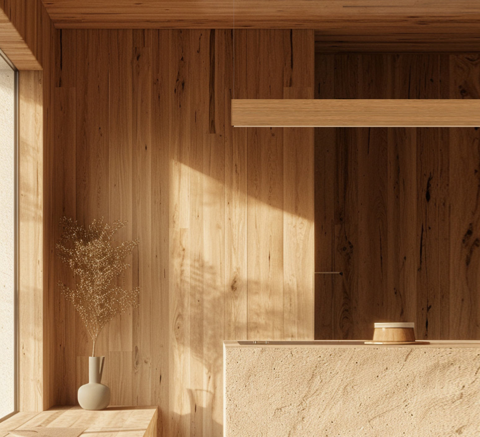 Ce luminaire décoratif en bois et acier s’intègre dans les espaces intérieurs en apportant à la fois chaleur et technicité.