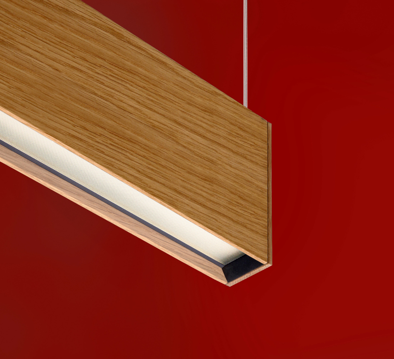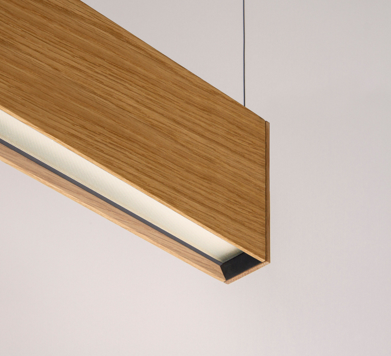 Suspension, L 120, chêne, LED, DALI, microprisme, 2700K, 1660 lm, L144cm, H12cm - Tunto