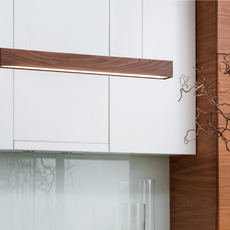 Suspension, L 60, bois, noyer, LED, DALI, microprisme, 2700K, 2000 lm, L88cm, H6cm - Tunto