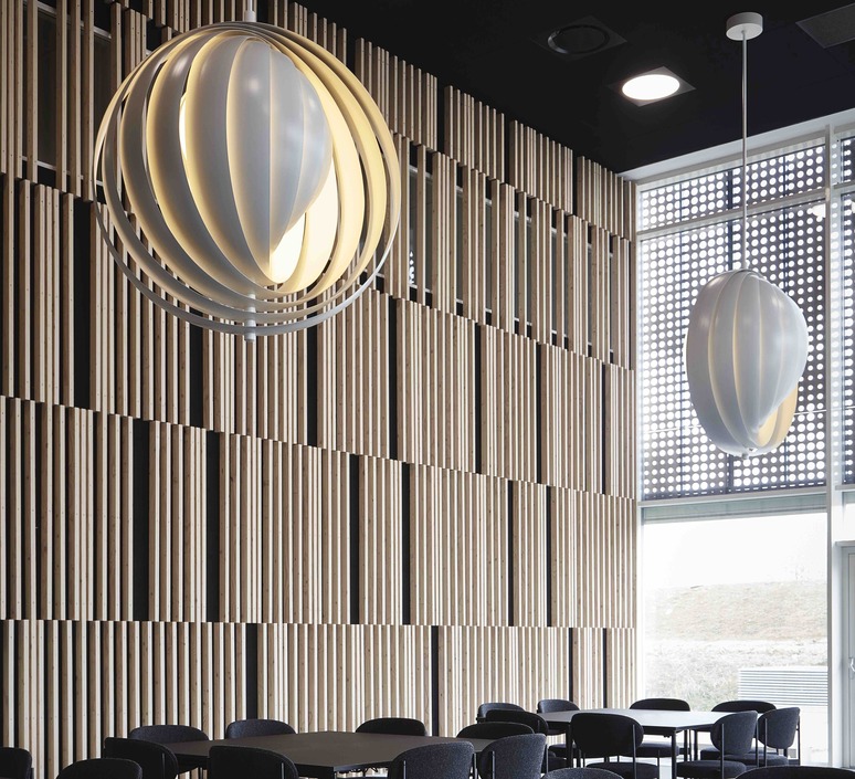 La Moon XXXL est composée 10 de lamelles verticales en métal laqué rangées en éventail, ce qui permet de pouvoir réguler le tamisage de la lumière en ouvrant ou fermant l’abat-jour. Ainsi, la lumière diffusée est homogène, douce et tamisée.