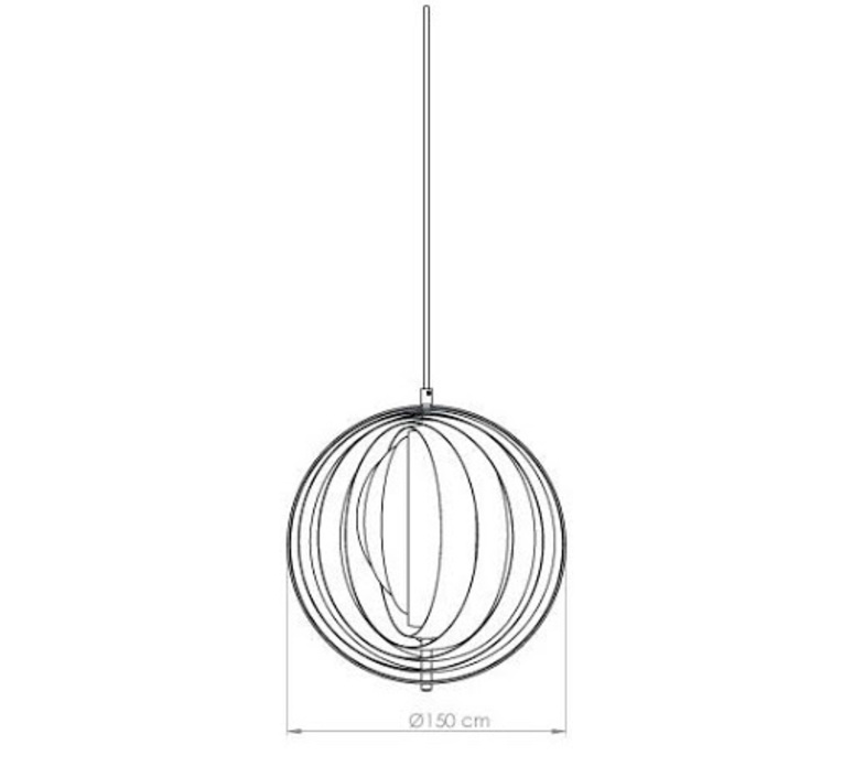 La suspension Moon XXXL de 150cm de diamètre possède un cable de 250 cm et trouve parfaitement sa place dans une pièce avec une belle hauteur sous plafond. De par sa taille et son design, presque hypnotique, la suspension XXXL ravive avec classe l’espace dans lequel elle se trouve. Il est recommandé d’utiliser une ampoule de type LED max 100W, non fournie mais par ailleurs disponible sur notre site.
