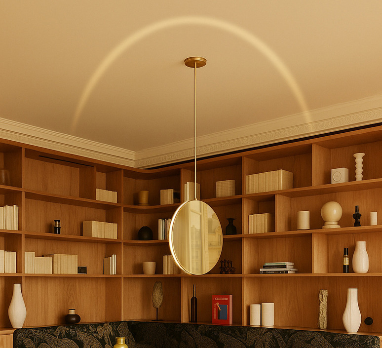 La suspension Myra impressionne par son allure dorée et son design circulaire inspiré de l'Art Déco. Son effet miroir capte la lumière et reflète subtilement l’environnement, ajoutant une dimension visuelle à votre décoration. Pour un rendu optimal, suspendez-la au-dessus d'une table à manger ou dans un hall d'entrée, créant ainsi une atmosphère chaleureuse et accueillante.