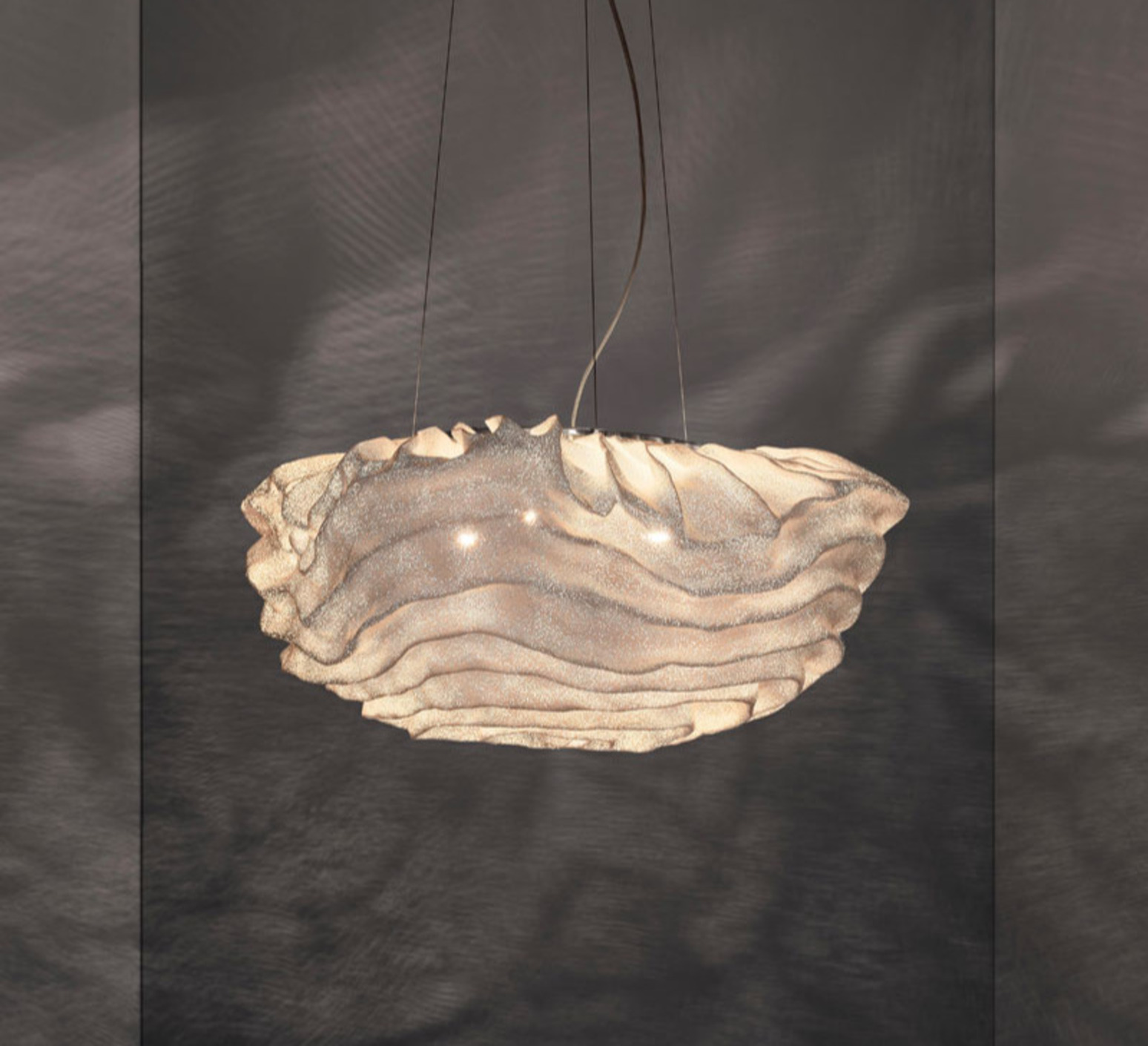 Chaque pièce présente une variation subtile, rendant chaque suspension unique. Elle s'intègre au-dessus d'une table, dans un salon ou un espace de passage, où elle apporte une présence visuelle douce sans figer l'espace.