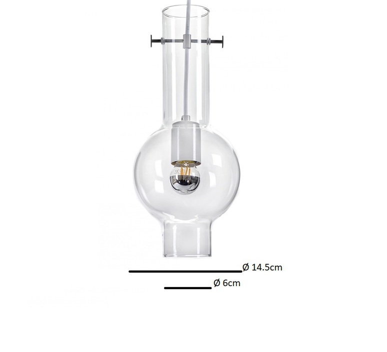 Les dimensions sont de 37cm de haut et 14,5cm de diamètre. Le câble est de 2m de long. L’ampoule n’est pas incluse avec le luminaire. Nous recommandons une LED E27, 25W.