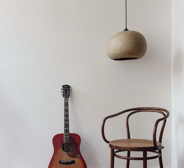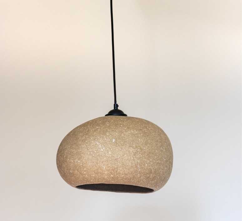 Simple et élégante, la suspension Pebble couleur sable est fabriqué en carton recyclé.