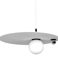 Inspiré par l'équilibre de notre univers, cette suspension existe dans une grande version qui joue avec l'équilibre et une petite version qui est centrée et n'a pas de poids.