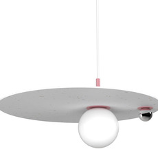 Inspiré par l'équilibre de notre univers, cette suspension existe dans une grande version qui joue avec l'équilibre et une petite version qui est centrée et n'a pas de poids.