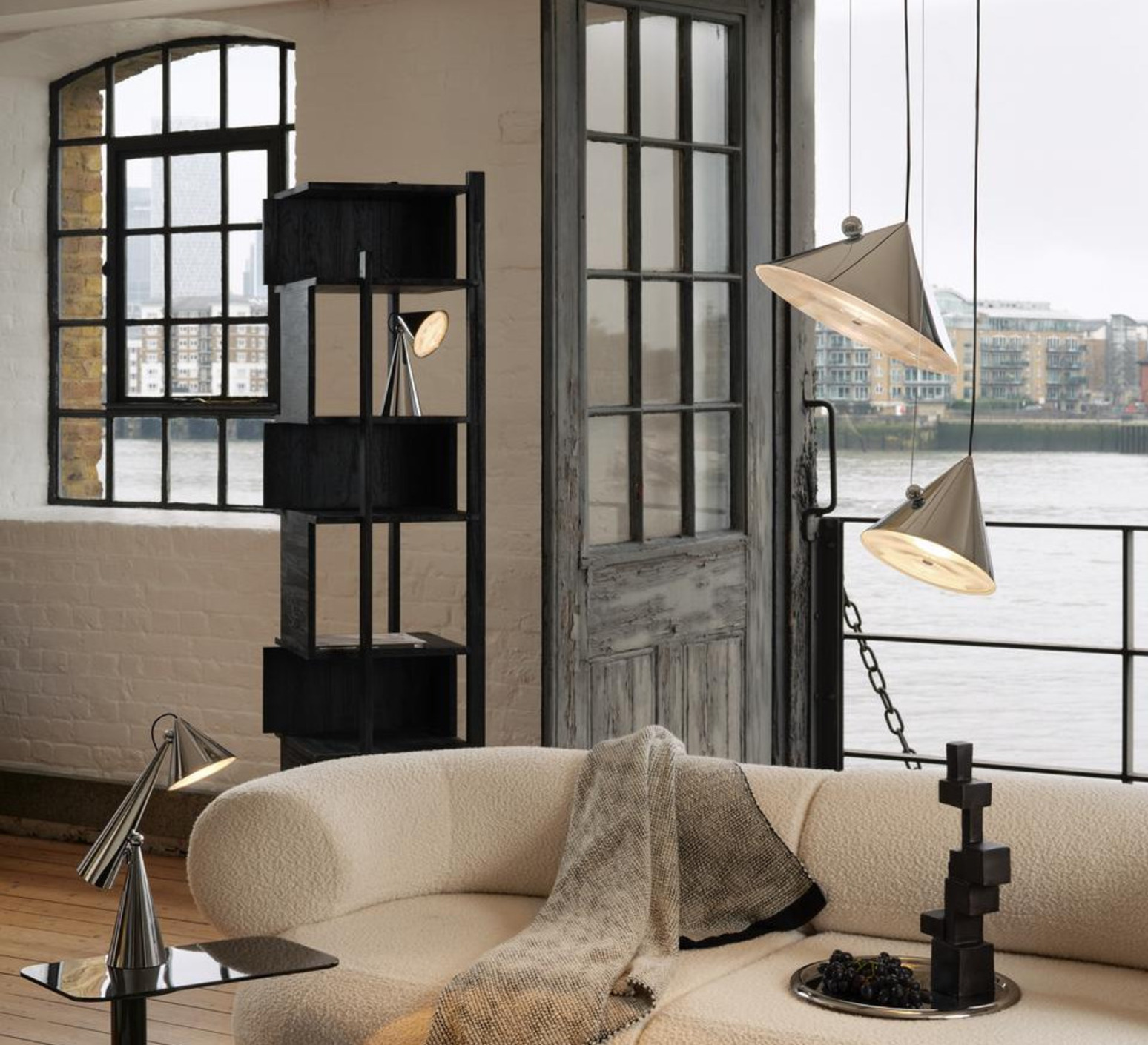 Sa forme conique et sa finition argent créent un objet graphique qui structure l’espace et attire le regard. Pose se place naturellement au-dessus d’une table, dans un salon ou un bureau, où elle diffuse un faisceau concentré capable de mettre en valeur un volume ou un point précis. Son design minimaliste permet de l’associer facilement à différents styles décoratifs, en solo ou en composition.