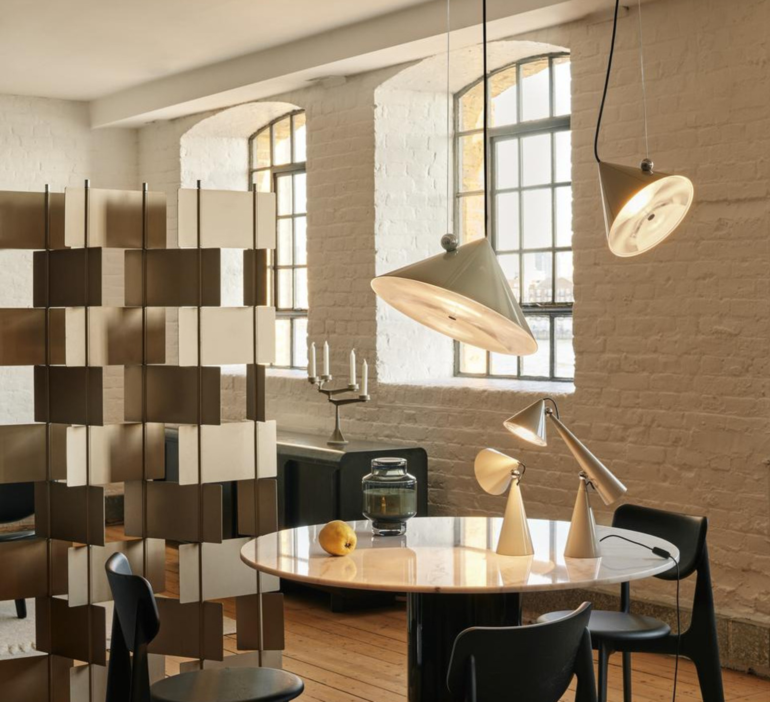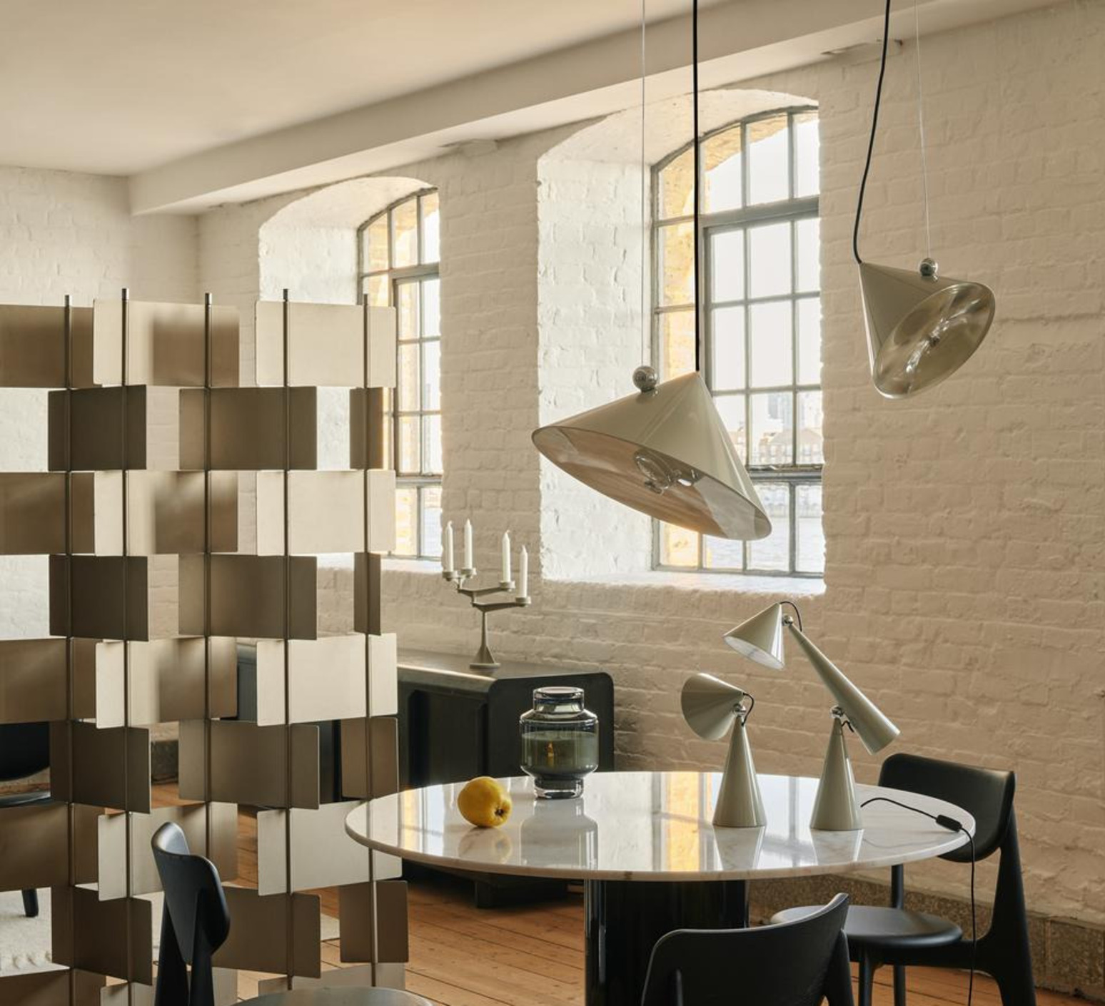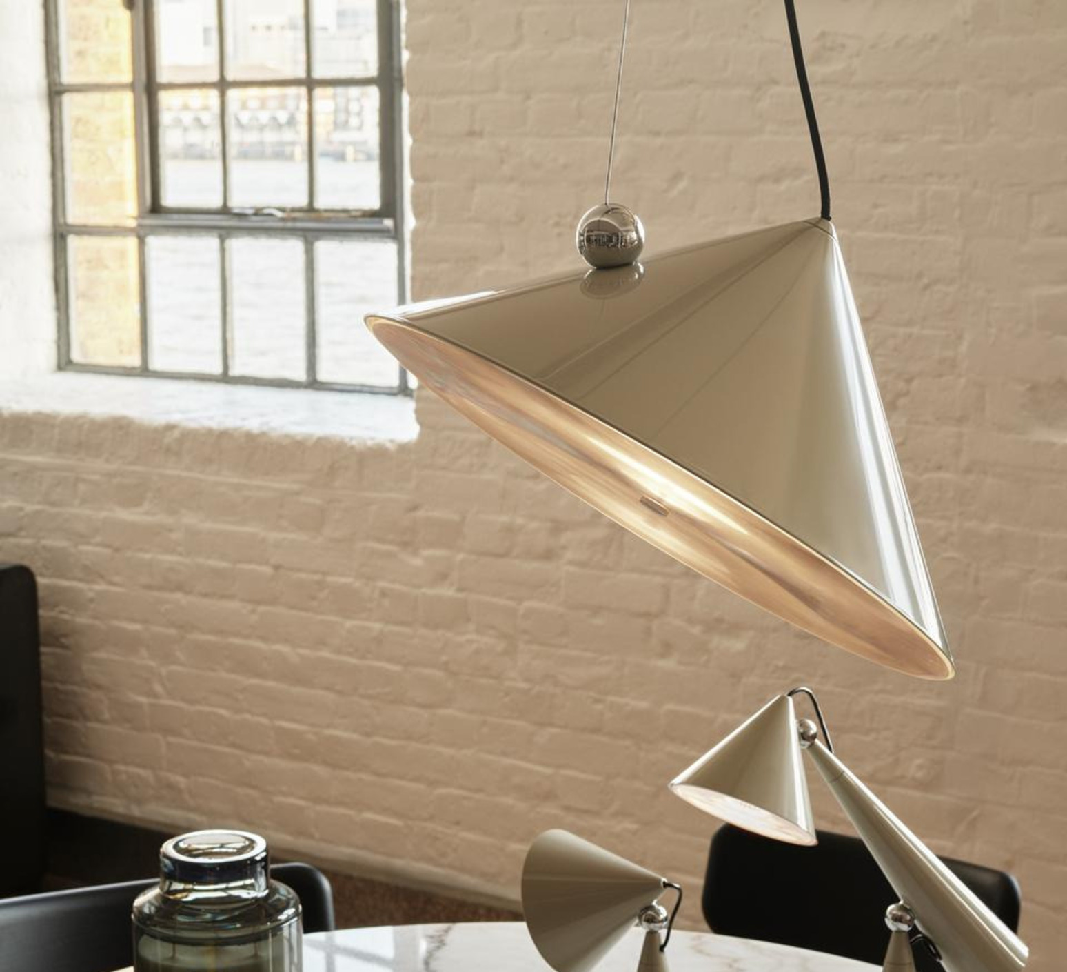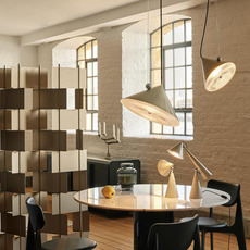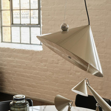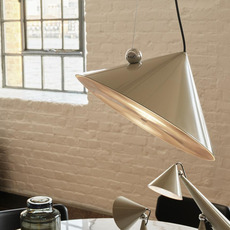 Sa forme conique et sa finition putty créent un objet graphique qui structure l’espace et attire le regard. Pose se place naturellement au-dessus d’une table, dans un salon ou un bureau, où elle diffuse un faisceau concentré capable de mettre en valeur un volume ou un point précis. Son design minimaliste permet de l’associer facilement à différents styles décoratifs, en solo ou en composition.