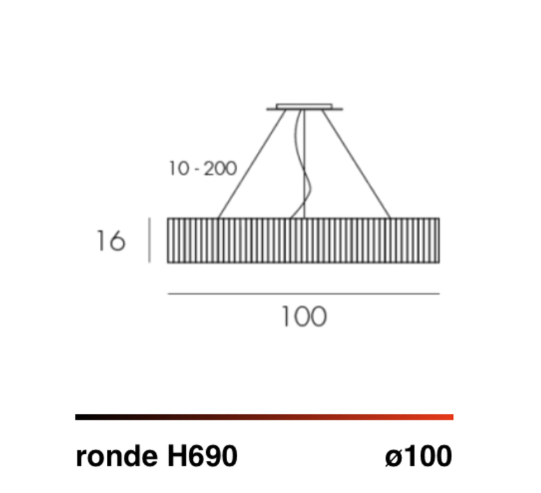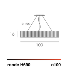 Cette suspension mesure 16cm de hauteur et a un diamètre de 100cm. Les 3 câbles de suspension ont une longueur variable qui va de 20 à 200cm. Celeste H690 est disponible en version blanche ou ivoire.