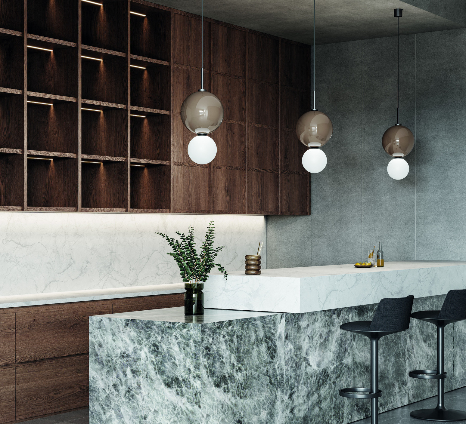 Dans un intérieur contemporain, moderne ou artistique, cette suspension Ulon s’intègre parfaitement au-dessus d’une table à manger, d’un îlot de cuisine ou dans un salon avec une hauteur sous plafond généreuse. Elle diffuse une lumière douce et équilibrée grâce à la double sphère de verre, créant une ambiance chaleureuse et raffinée sans imposer un style trop présent.