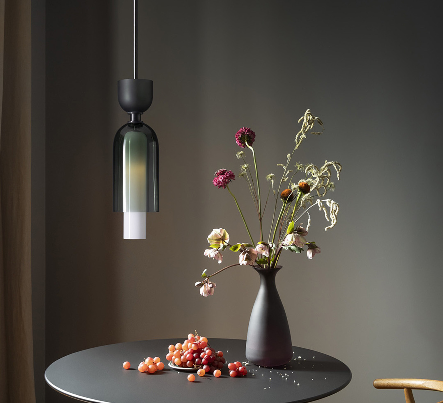 Suspension, Union, blanc et fumé grivé, noir oxydé, Ø15cm, H52cm - SkLO Studio