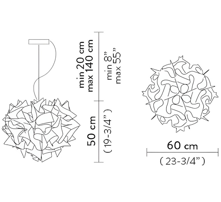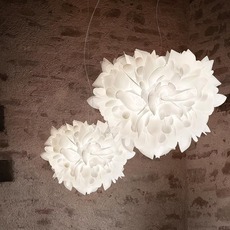Originaire d'Italie, ce luminaire artistique de 60 cm de diamètre et 50 cm de hauteur incarne l'excellence du design contemporain. Fabriquée en Opalflex® et agrémentée de détails en Lentiflex® with cold foil, cette suspension se démarque par son esthétique organique et graphique.