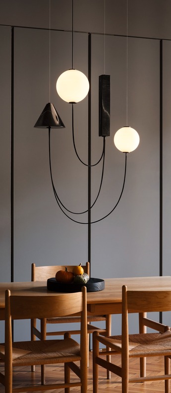 Suspension, Union, blanc et fumé grivé, noir oxydé, Ø15cm, H52cm - ...